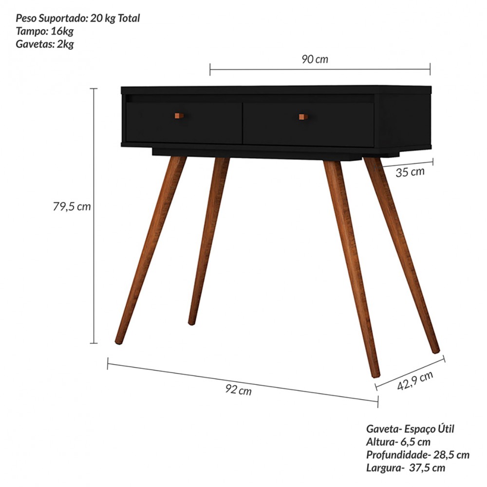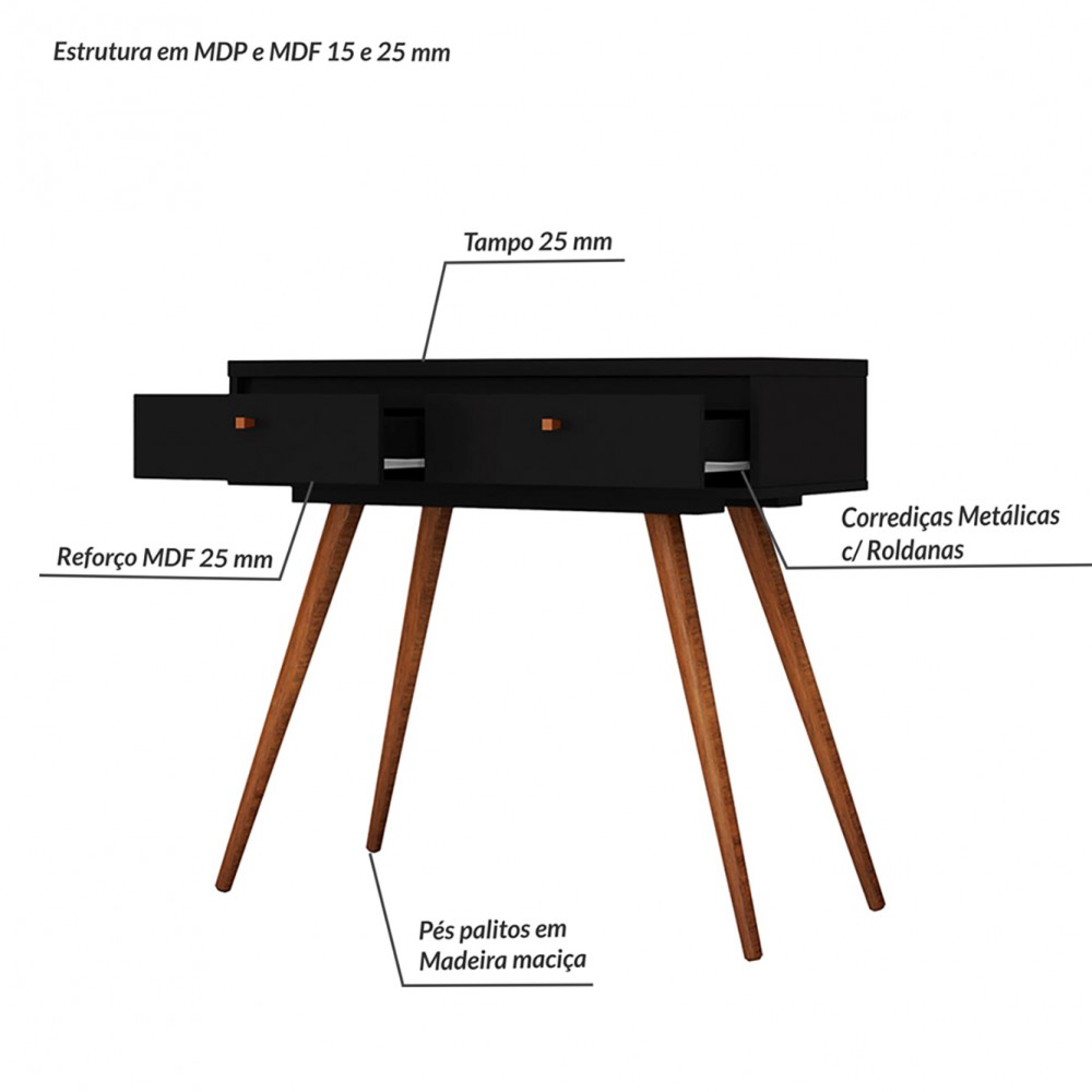 Aparador Retro York 2 Gavetas Preto - Olivar Móveis