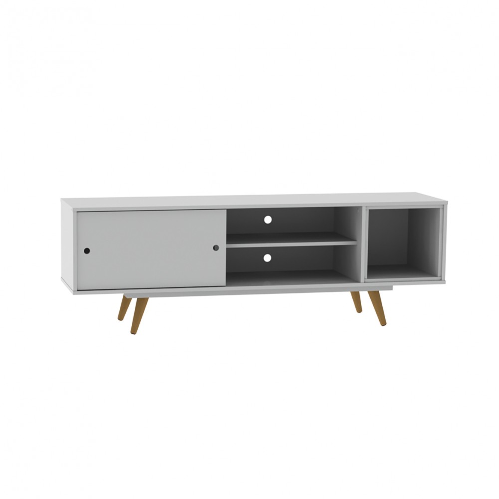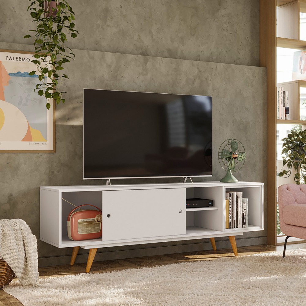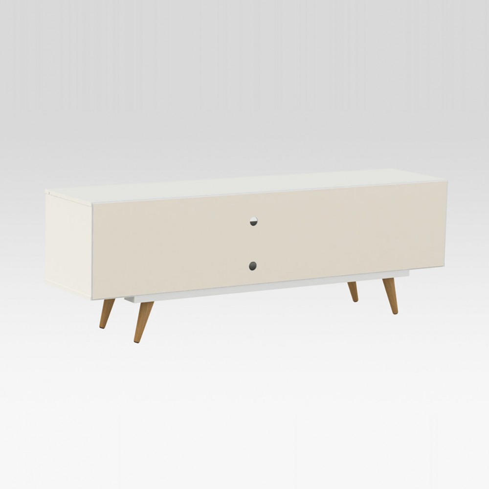 A Bancada Retrô 50, possui portas deslizantes em MDF, prateleira interna, nicho interno para acomodação de diversos objetos. Possui pés palito em madeira trazendo o design retrô.