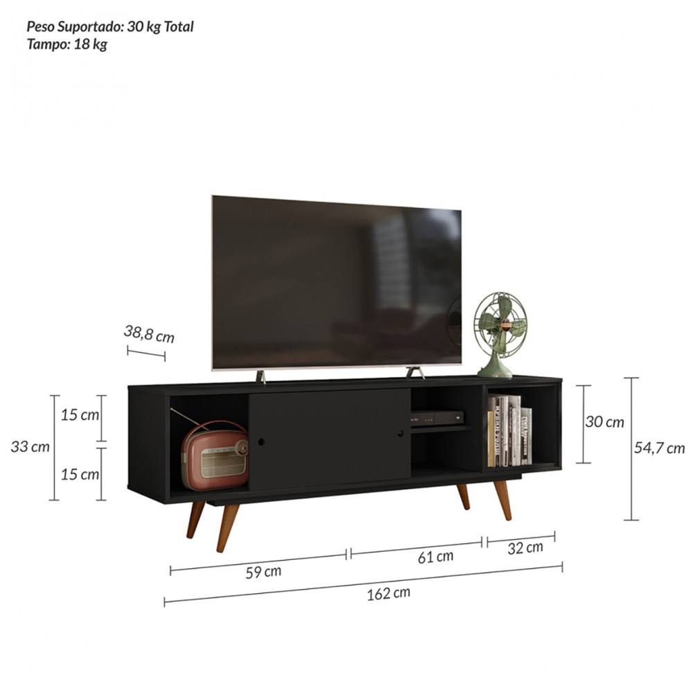 Bancada Retro 50 Até 60 Polegadas 1 Porta Preto - Olivar Móveis