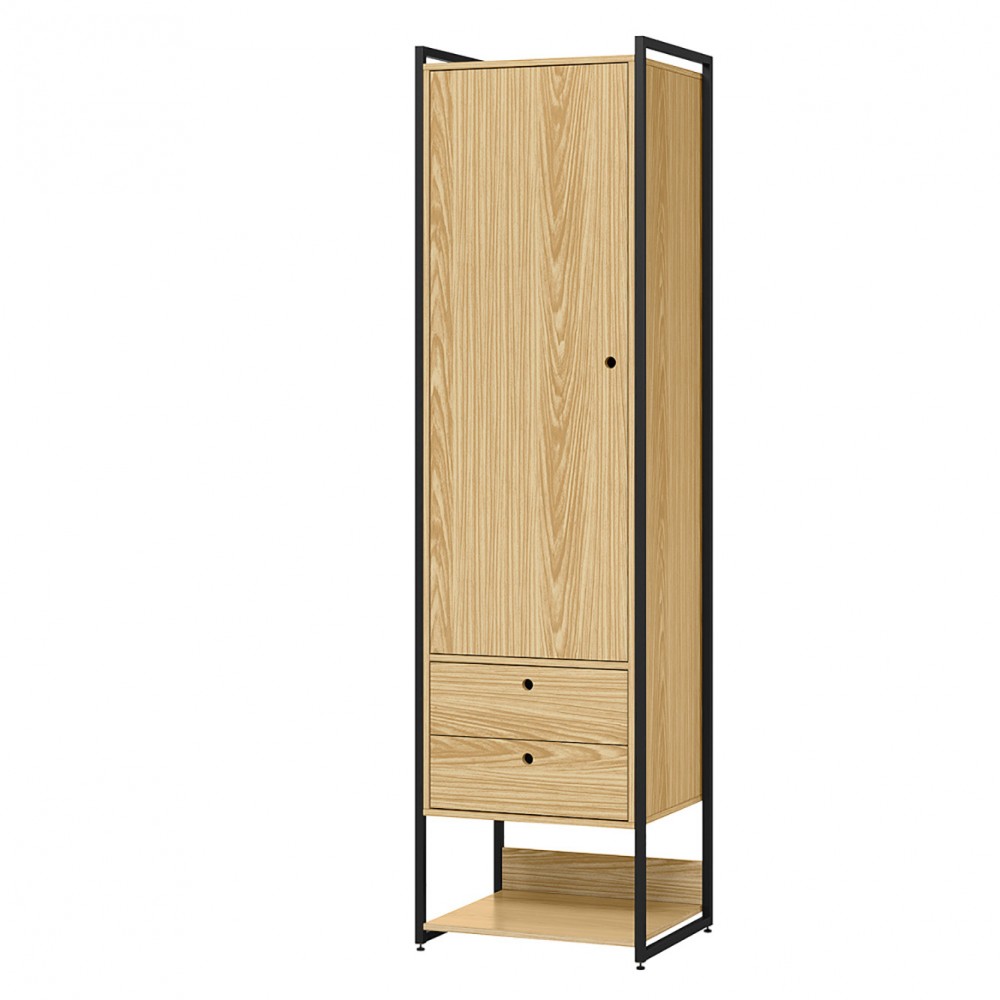 O Closet Ind. Olivar-Módulo 04 é um produto que mostra uma diversidade de materiais, com metal nas laterais e MDF e MDP de 15 mm. Ele possui 2 prateleiras para acomodar objetos ou roupas, um cabideiro de alumínio, duas gavetas com corrediças metálicas, uma porta com dobradiças metálicas, um detalhe usinado na frente da gaveta e porta para servir como puxadores e pés reguláveis.