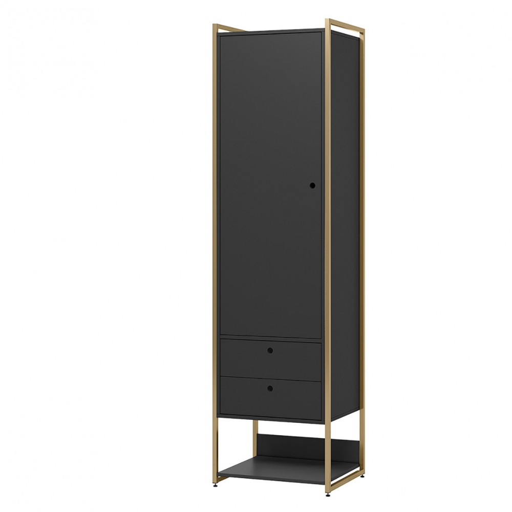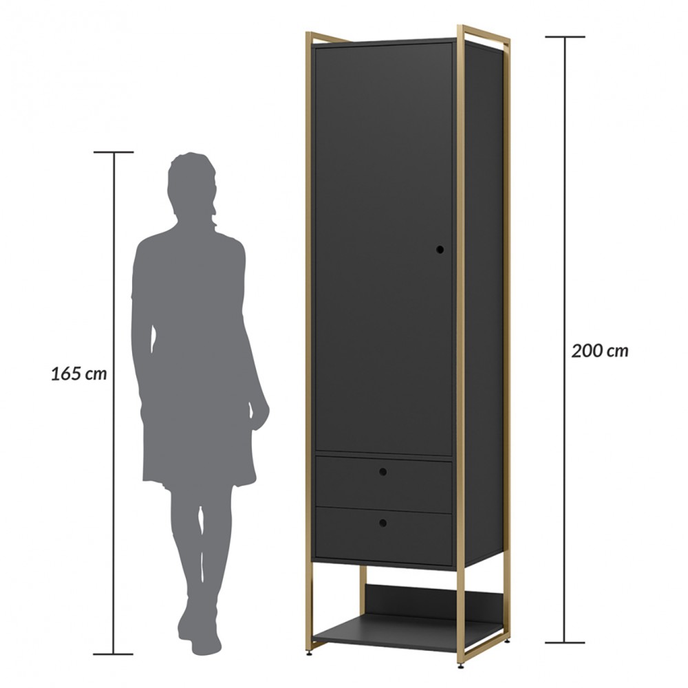 O Closet Ind. Olivar-Módulo 04 é um produto que mostra uma diversidade de materiais, com metal nas laterais e MDF e MDP de 15 mm. Ele possui 2 prateleiras para acomodar objetos ou roupas, um cabideiro de alumínio, duas gavetas com corrediças metálicas, uma porta com dobradiças metálicas, um detalhe usinado na frente da gaveta e porta para servir como puxadores e pés reguláveis.
