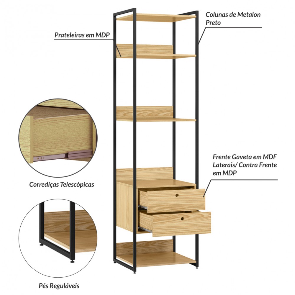 Closet Industrial Olivar 1 Porta 8 Gavetas Pinus - Olivar Móveis