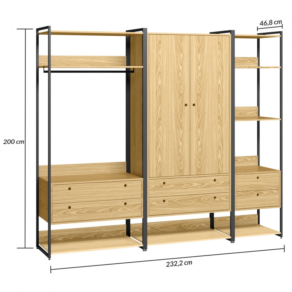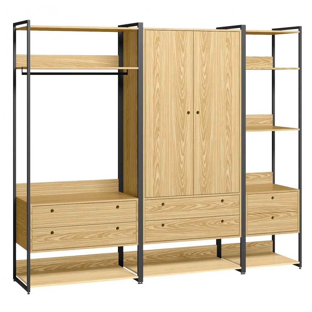 Este é o Conjunto de Closet Ind. Olivar-Módulos 05,03 e 02, produto que mostra uma diversidade de materiais, com metal nas laterais, MDF e MDP de 15 mm. Ele possui prateleiras para acomodar objetos ou roupas, 1 cabideiro de metal e 1 cabideiro de alumínio, gavetas e portas com corrediças e dobradiças metálicas, tudo com design de uma pegada industrial para quem gosta do estilo mais urbano e contemporâneo onde você personaliza seu ambiente deixando-o exclusivo.