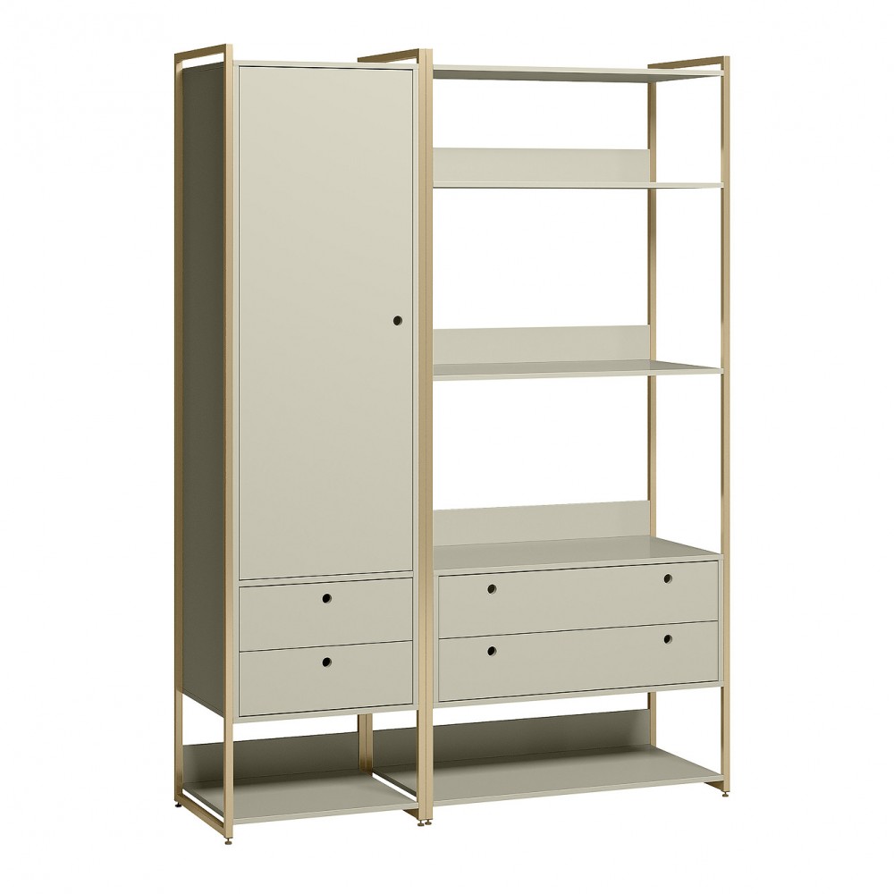Este é o Conjunto de Closet Ind. Olivar-Módulos 04 e 01, produto que mostra uma diversidade de materiais, com metal nas laterais, MDF e MDP de 15 mm. Ele possui prateleiras para acomodar objetos ou roupas, cabideiro de alumínio, gavetas e portas com corrediças e dobradiças metálicas, tudo com design de uma pegada industrial para quem gosta do estilo mais urbano e contemporâneo onde você personaliza seu ambiente deixando-o exclusivo.