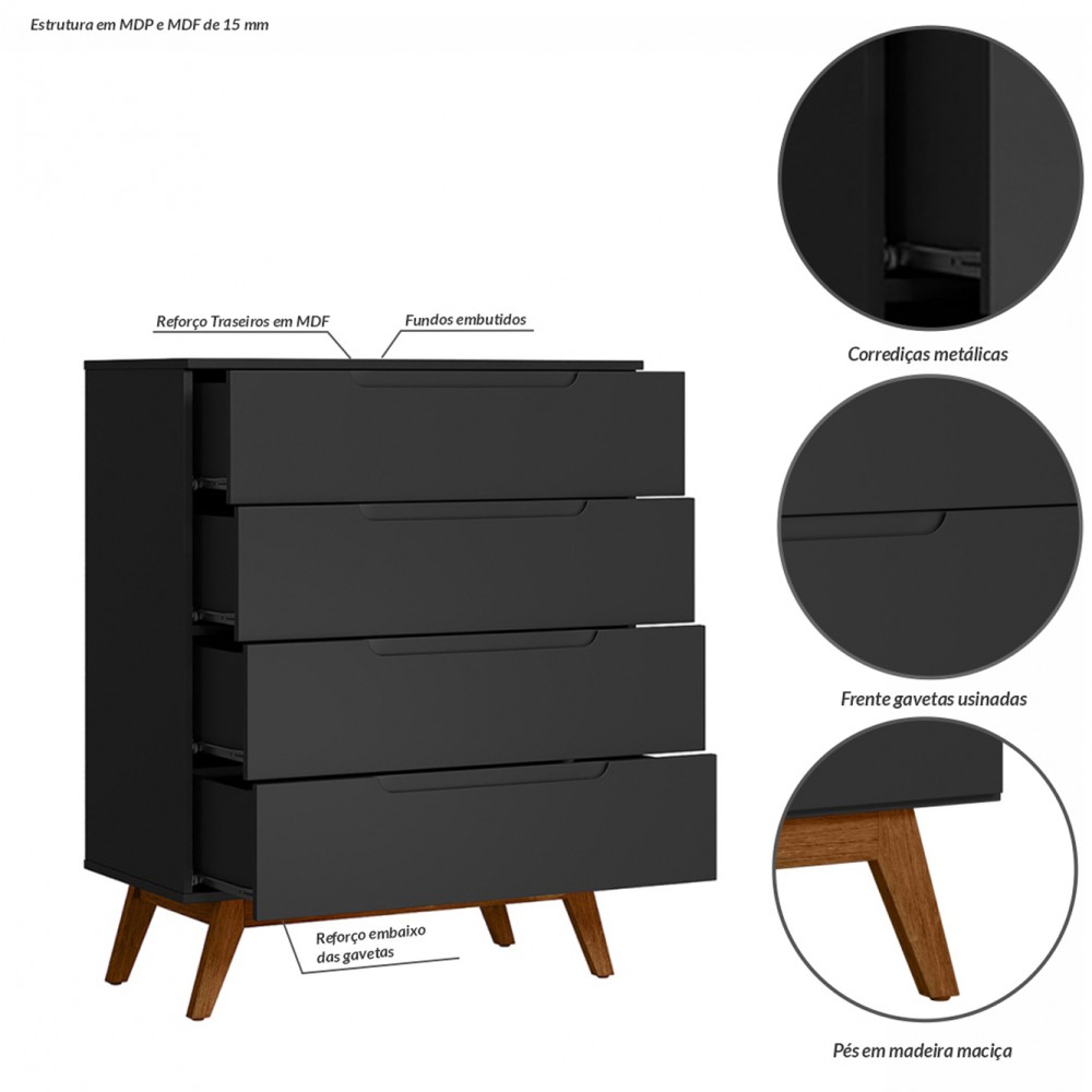 Cômoda Retrô com 4 Gavetas Alpi - Preto