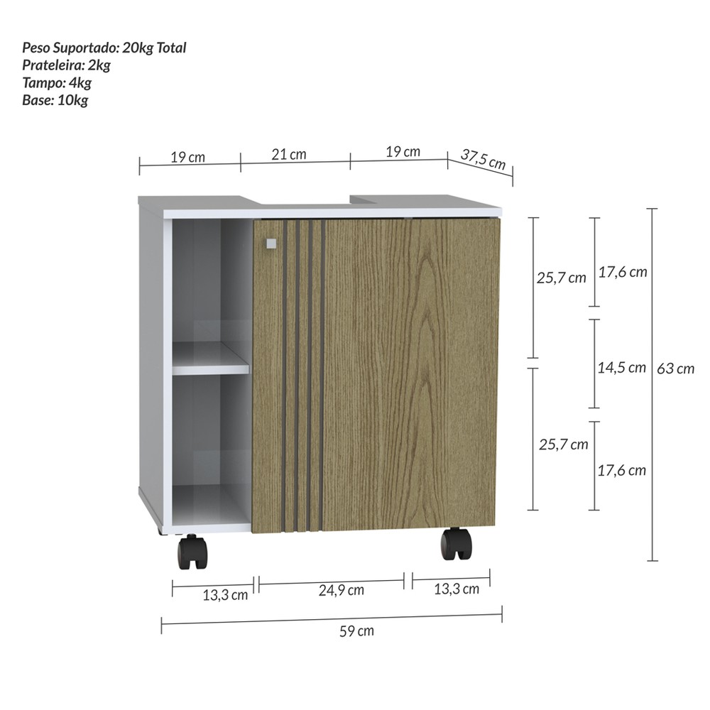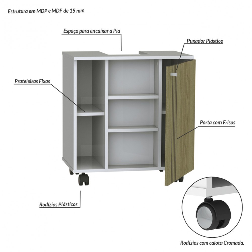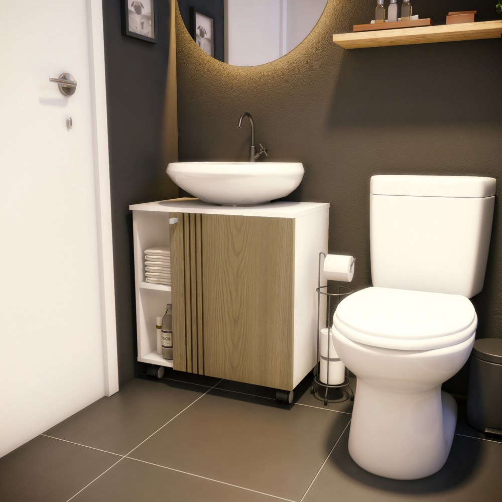 Gabinete Pia Banheiro Branco/Freijo - Olivar Móveis