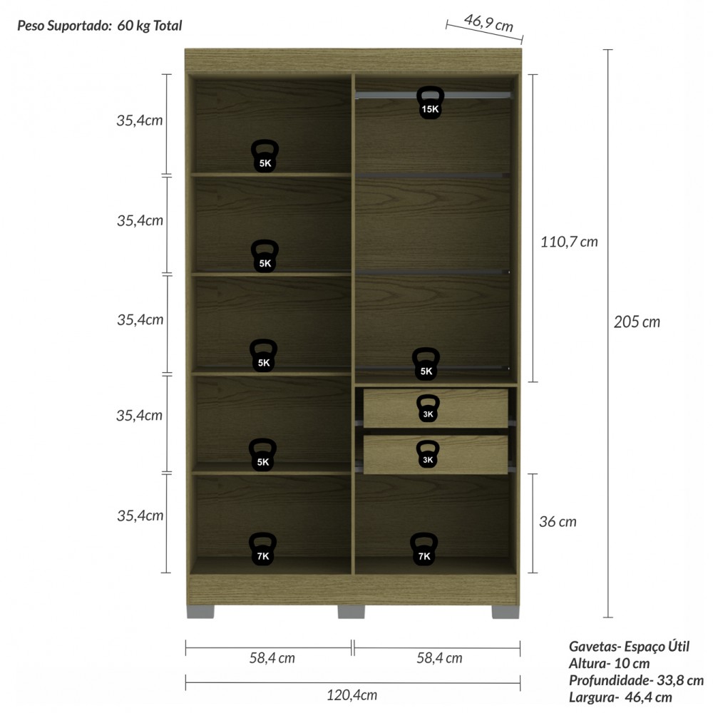 Medida do Produto Montado (LXCXA) 46,9cmX120,4cmX205cm