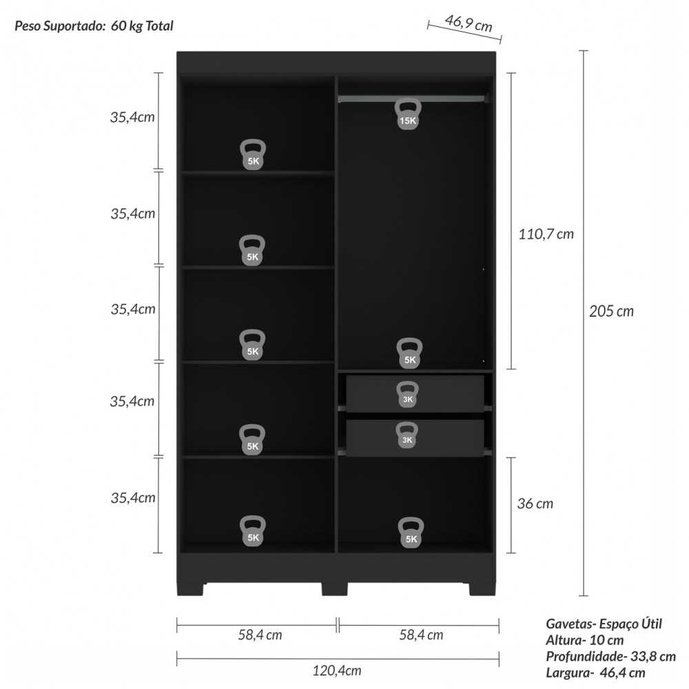 Medida do Produto Montado (LXCXA) 46,9cmX120,4cmX205cm