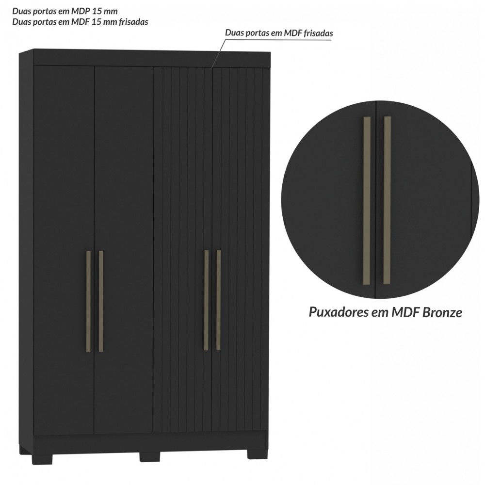Guarda Roupa Dakota 4 Portas Preto - Olivar Móveis