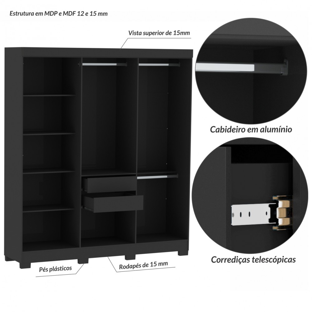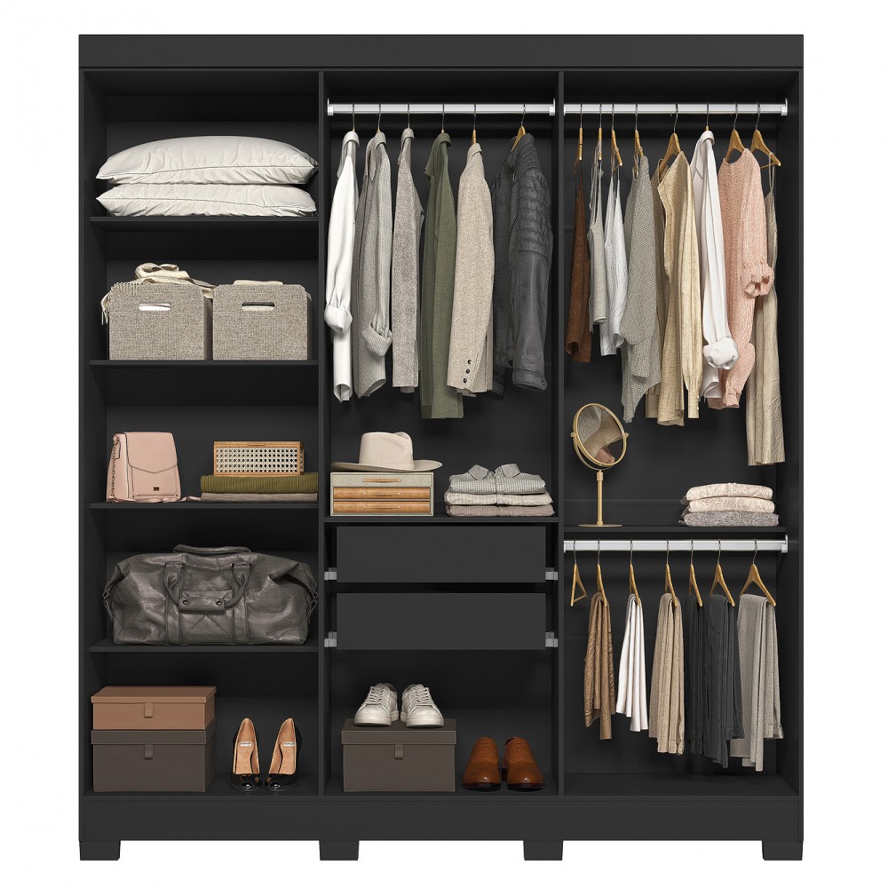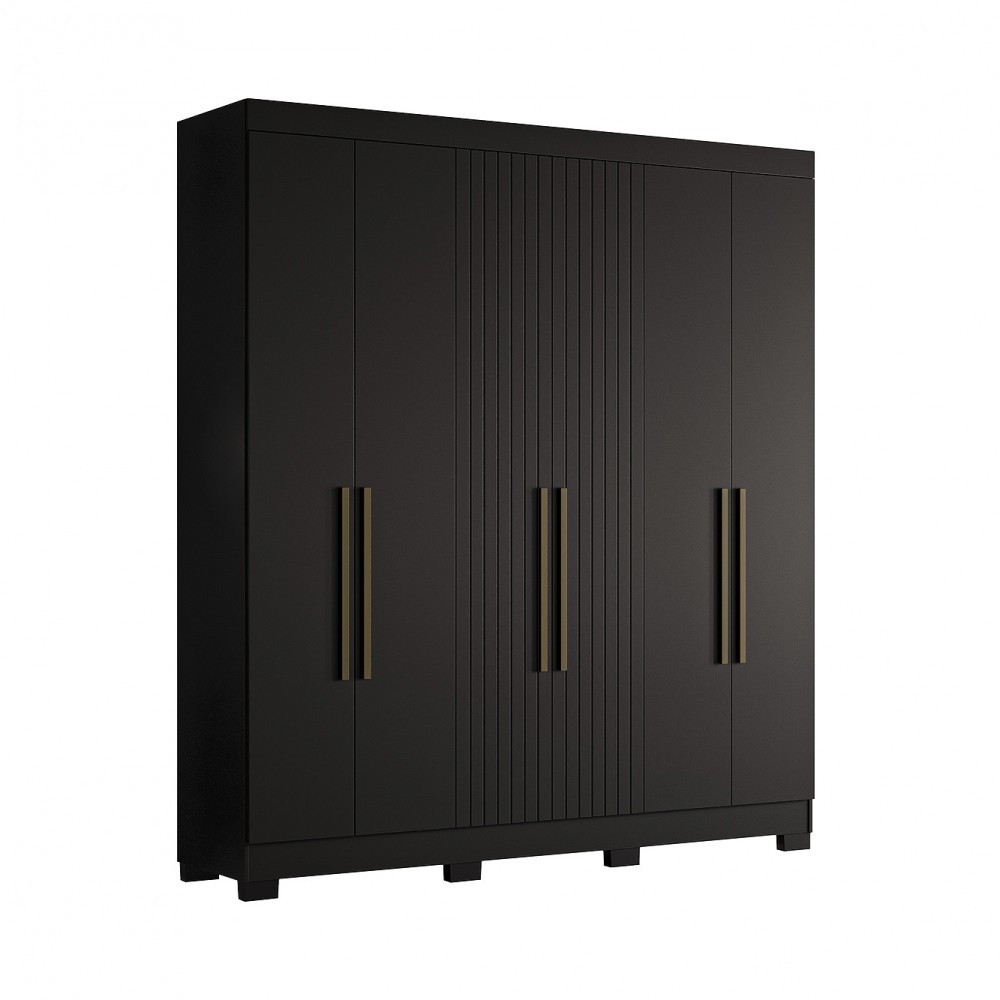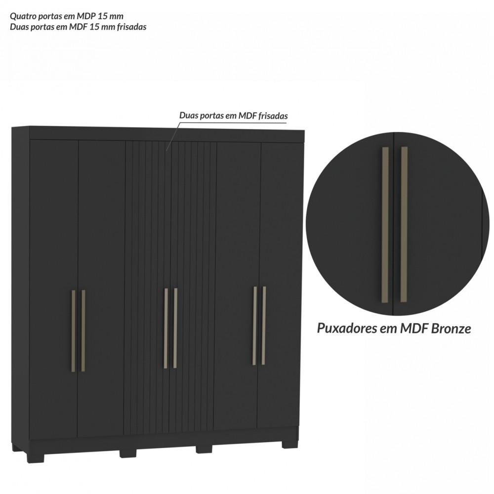 O Guarda Roupa Dakota 6P é um produto útil, com design inovador, destacando duas portas em MDF com frisos e quatro sem frisos, os puxadores são mais longos com 50 cm em MDF na cor bronze. Ele possui 9 prateleiras para acomodar objetos, roupas e sapatos, duas gavetas com corrediças telescópicas, três cabideiros em alumínio para você pendurar todas suas roupas e um deles serve como calceiro. Possui pés em plástico para que você possa limpar por baixo e também não ter perigo de umidade. Este Guarda Roupa tem um tamanho ideal para o seu dormitório, deixando-o organizado e personalizado.