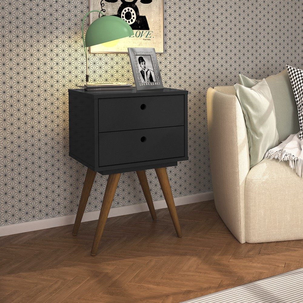 Criado Retrô 50, possui 2 gavetas c/corrediças metálicas. Possui pés palito em madeira, trazendo o design Retrô.