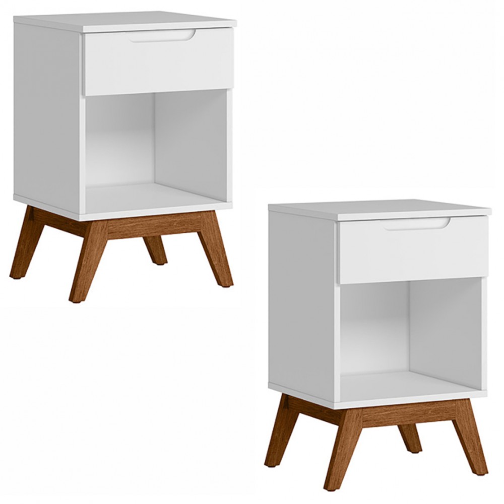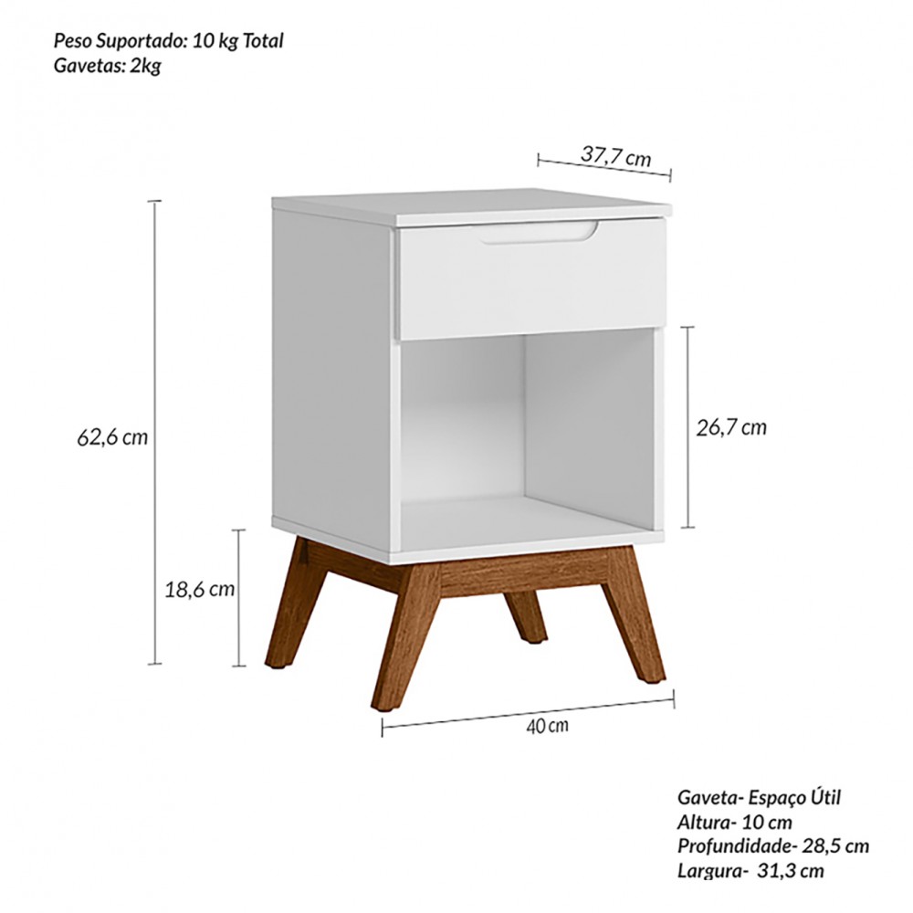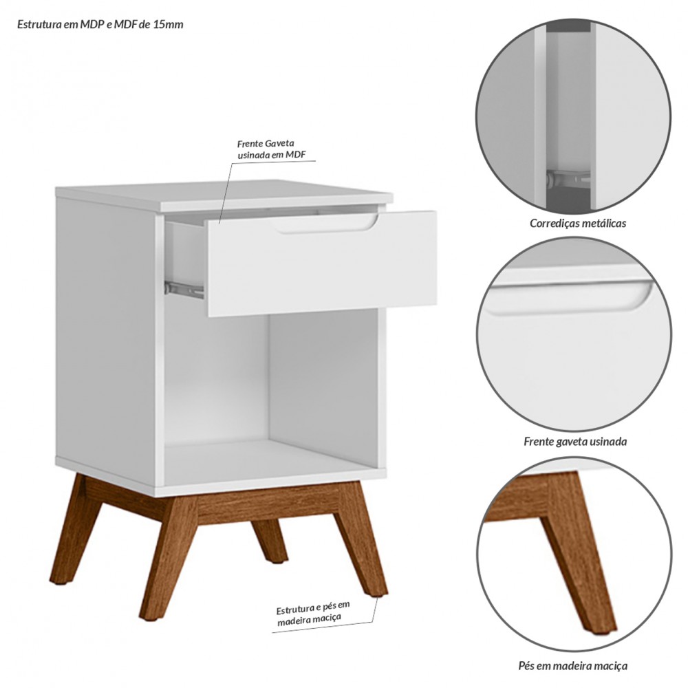 Kit Mesa de Cabeceira Retrô Alpi Gaveta Branco - Olivar Móveis