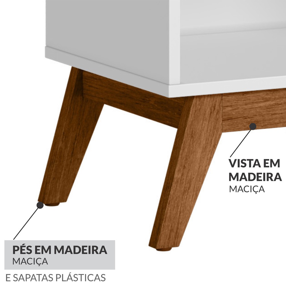 A Mesa de Cabeceira Retrô Alpi possui um design com charme e elegância, em sua gaveta encontramos, um detalhe usinado no MDF para servir como puxador. Produzido em MDP e MDF de 15 mm, possui uma prateleira interna e uma gaveta. Os pés são chassi deixando o produto robusto e com classe.