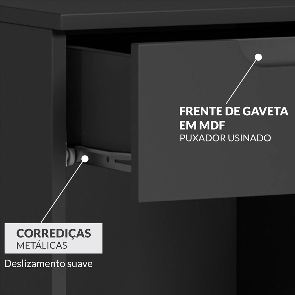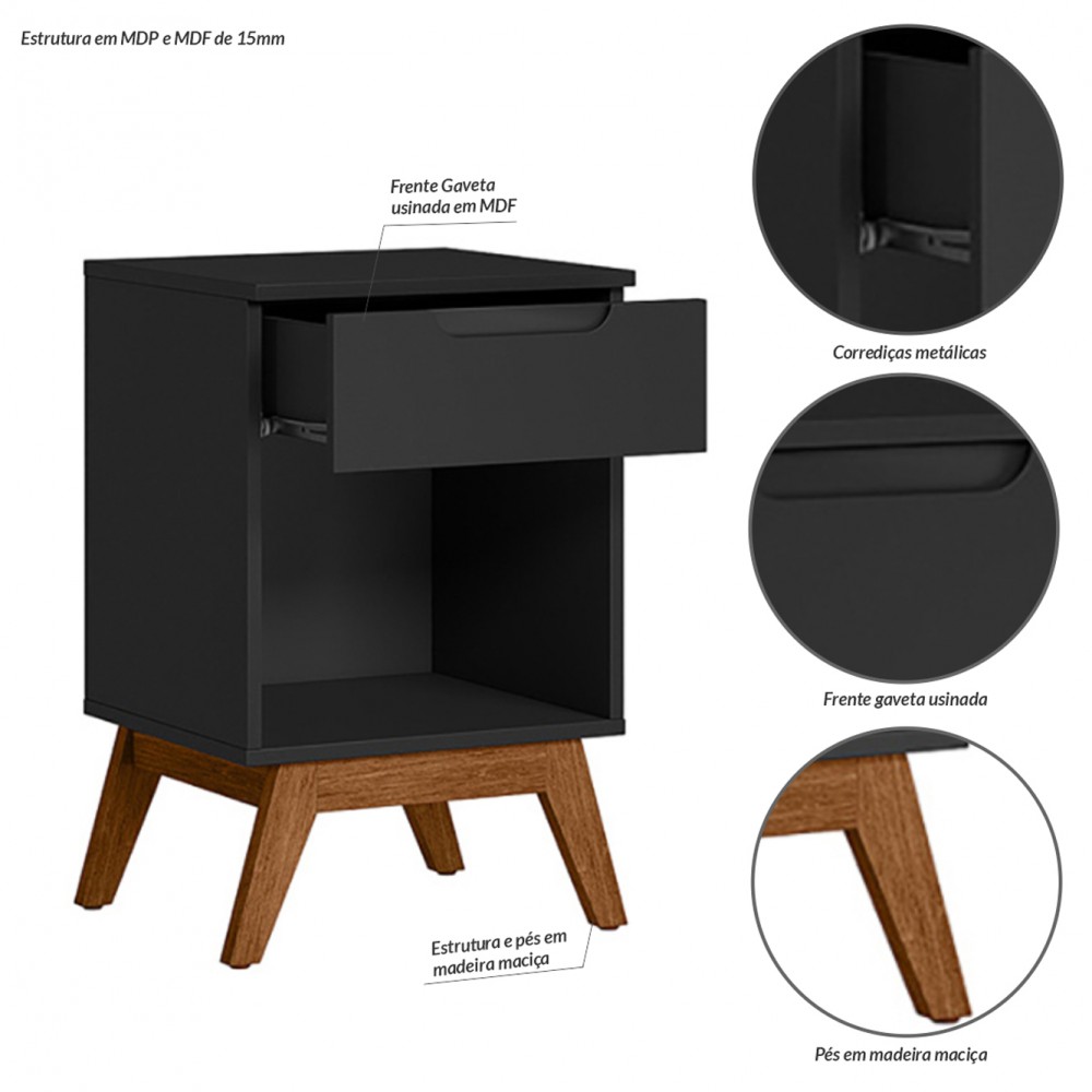 A Mesa de Cabeceira Retrô Alpi possui um design com charme e elegância, em sua gaveta encontramos, um detalhe usinado no MDF para servir como puxador. Produzido em MDP e MDF de 15 mm, possui uma prateleira interna e uma gaveta. Os pés são chassi deixando o produto robusto e com classe.