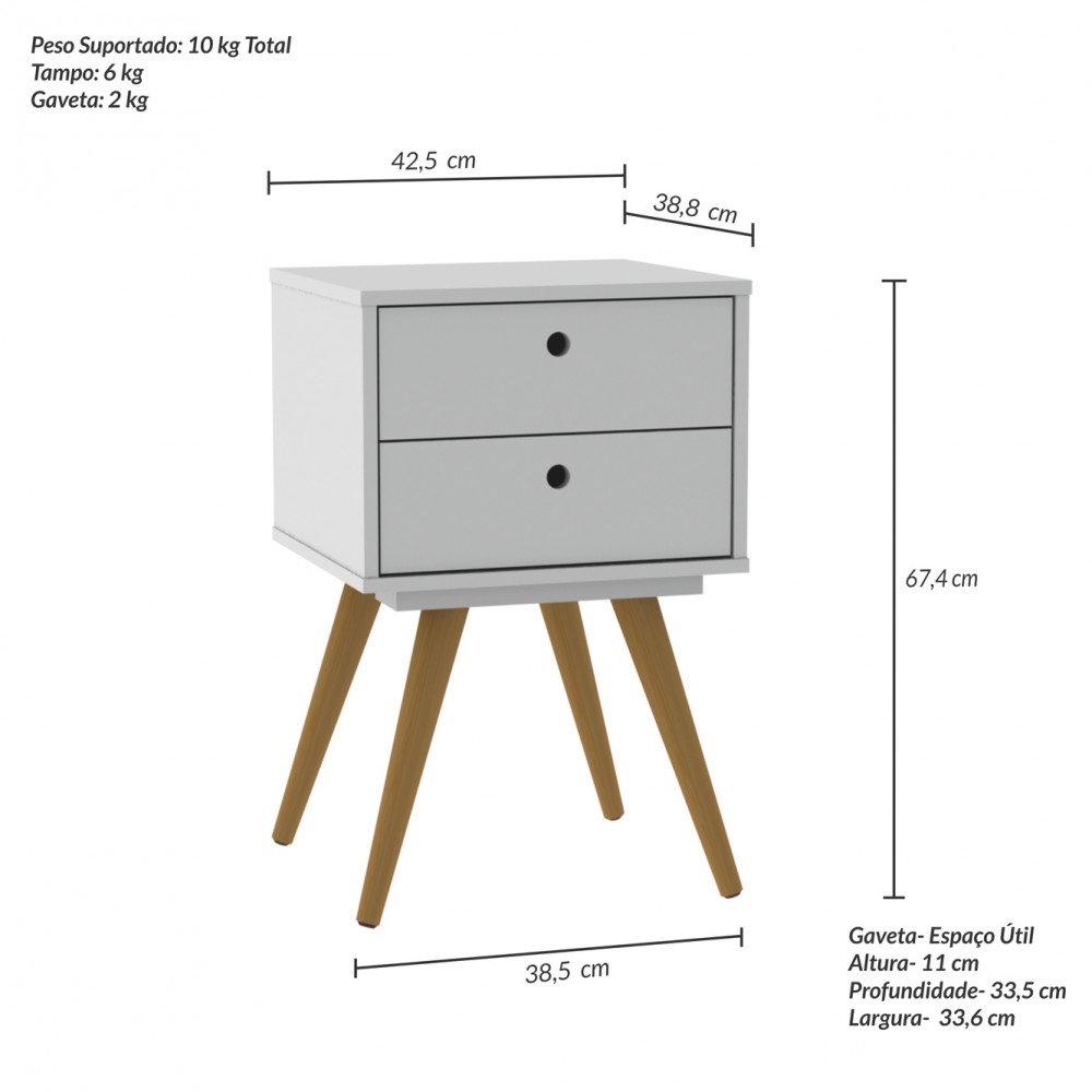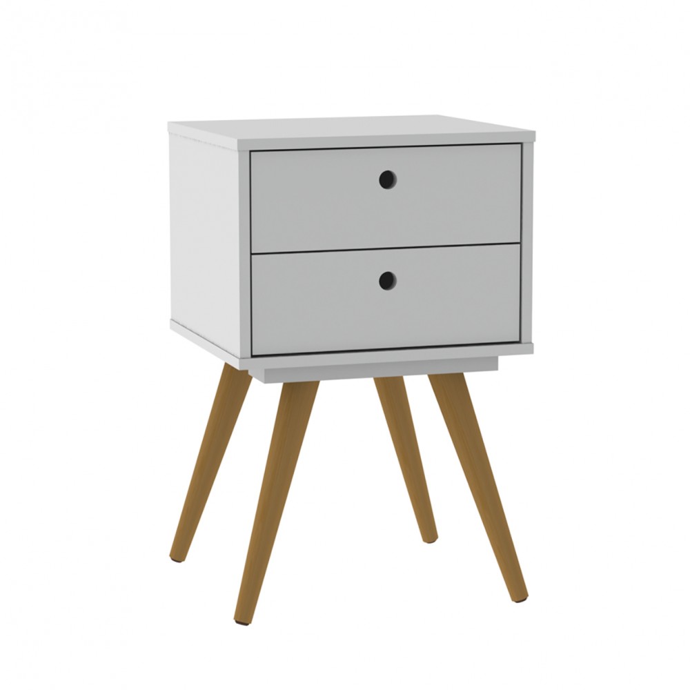 Criado Retrô 50, possui 2 gavetas c/corrediças metálicas. Possui pés palito em madeira, trazendo o design Retrô.