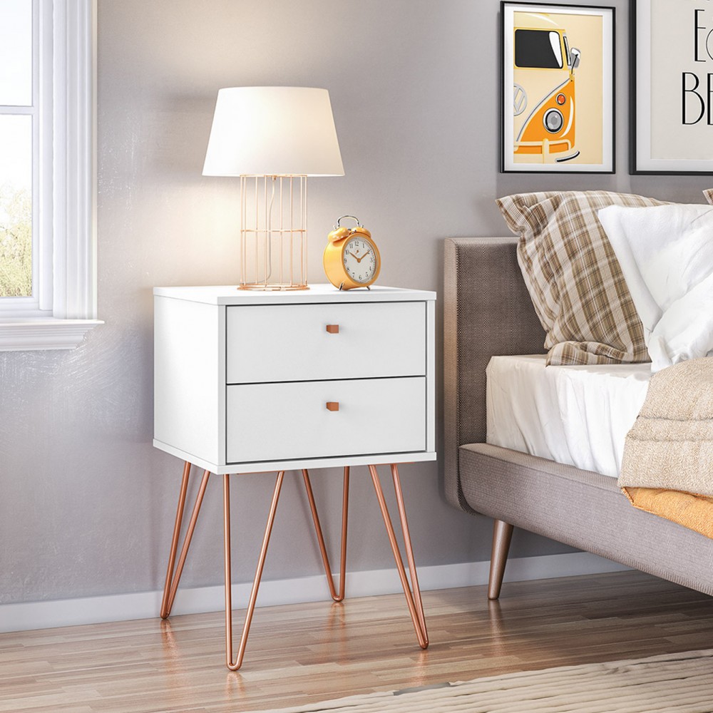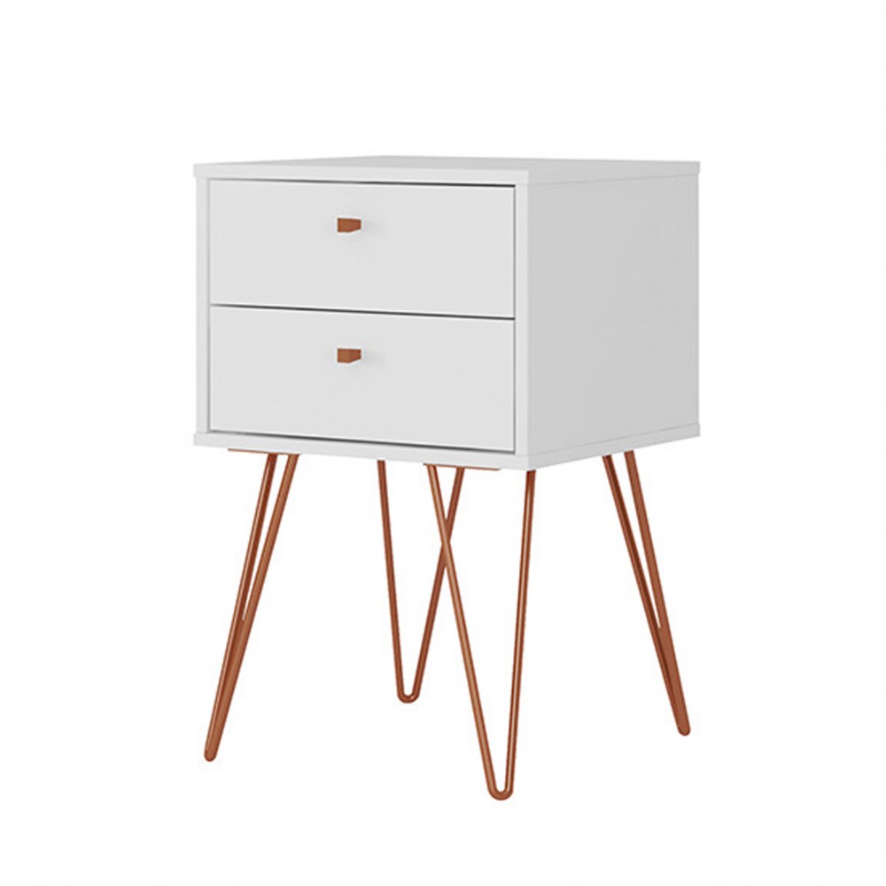 O Criado Retrô Metal Bled é um móvel com uma pegada retrô, combina em qualquer ambiente para sua decoração, salas, quarto, etc. Tem como diferencial seus pés de metal em formato agulha de 35 cm. Possui duas gavetas com corrediças deslizantes e metálicas e dois puxadores.