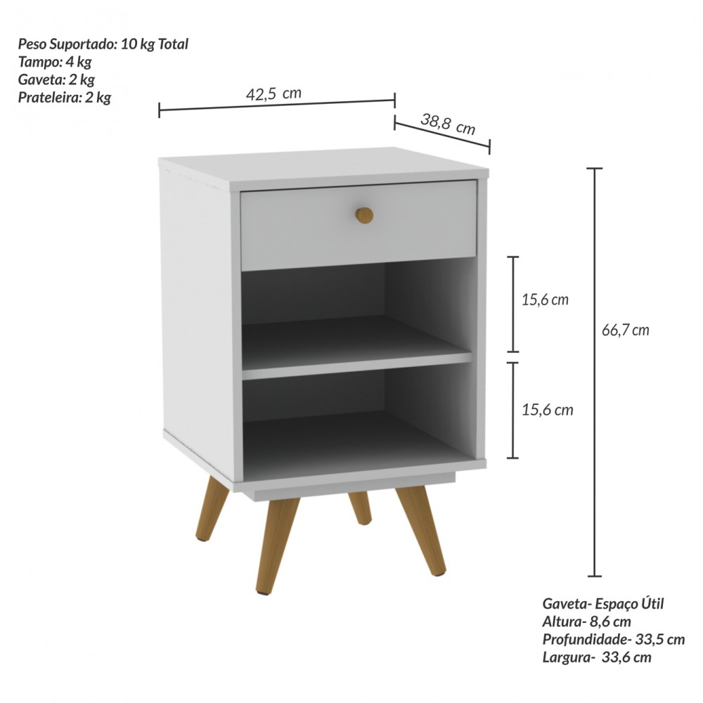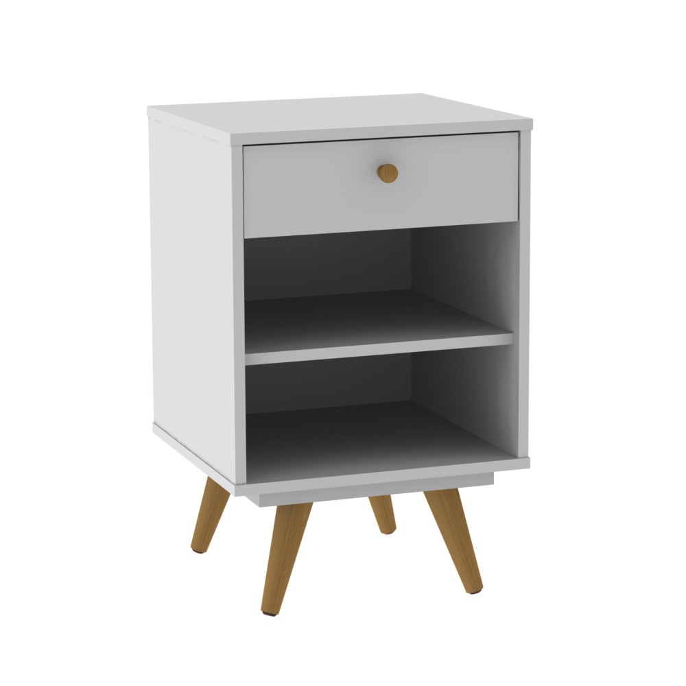 Mesa de Cabeceira Retro Plus 1 Gaveta Branco - Olivar Móveis