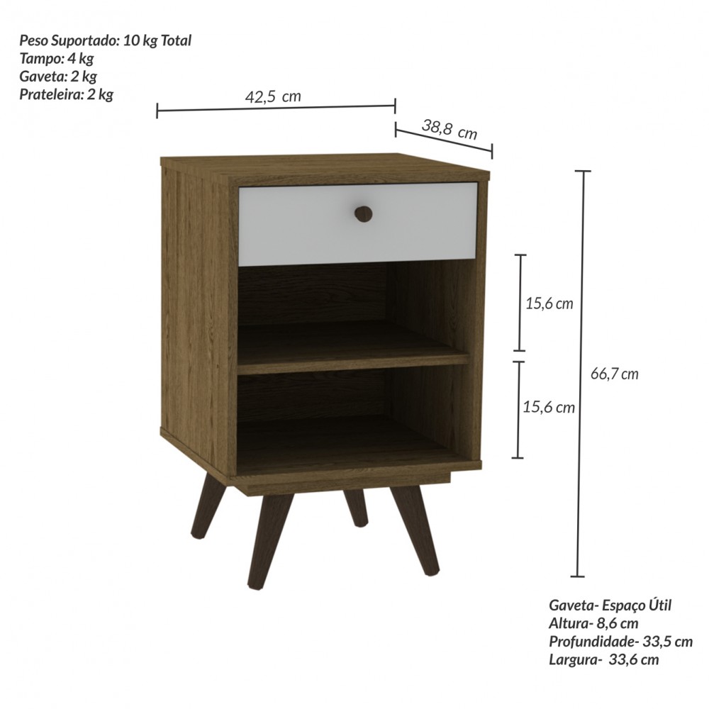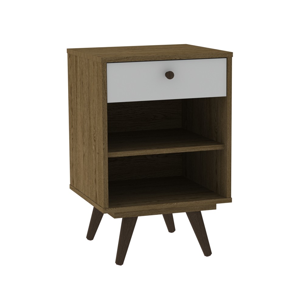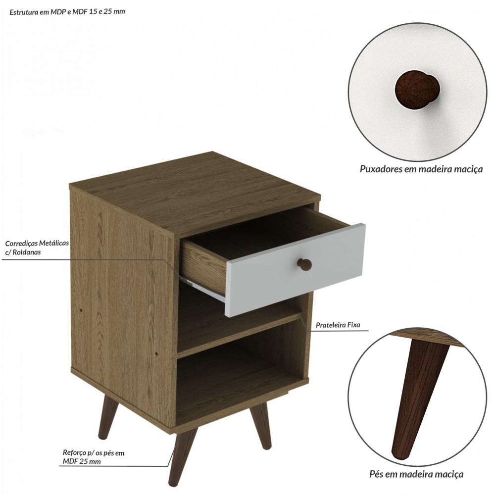 Mesa de Cabeceira Retro Plus 1 Gaveta Rustik Carvalho/Branco - Olivar Móveis