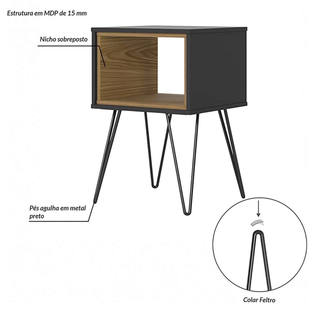 A Mesa Lateral Retrô Metal Dallas é um móvel com uma pegada retrô, onde irá deixar qualquer ambiente diferenciado com seus pés de metal em formato agulha de 35 cm. Possui um nicho sobreposto deixando-a com um design diferente e moderno.