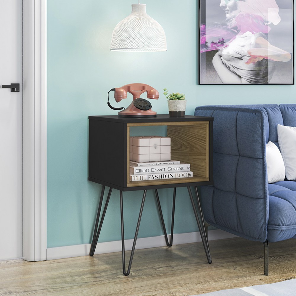 Mesa Lateral Retro Metal Dallas 1 Nicho Preto/Mel - Olivar Móveis