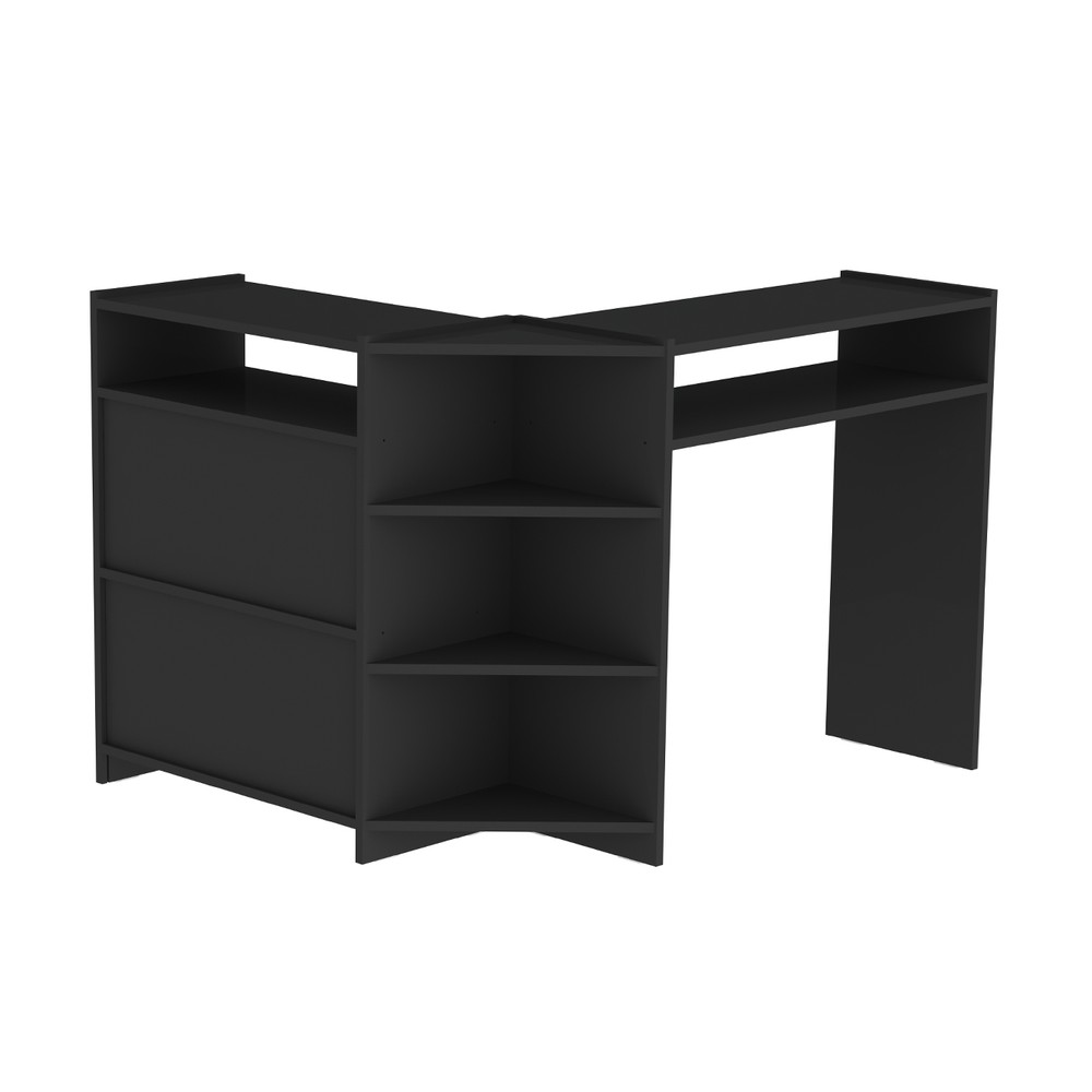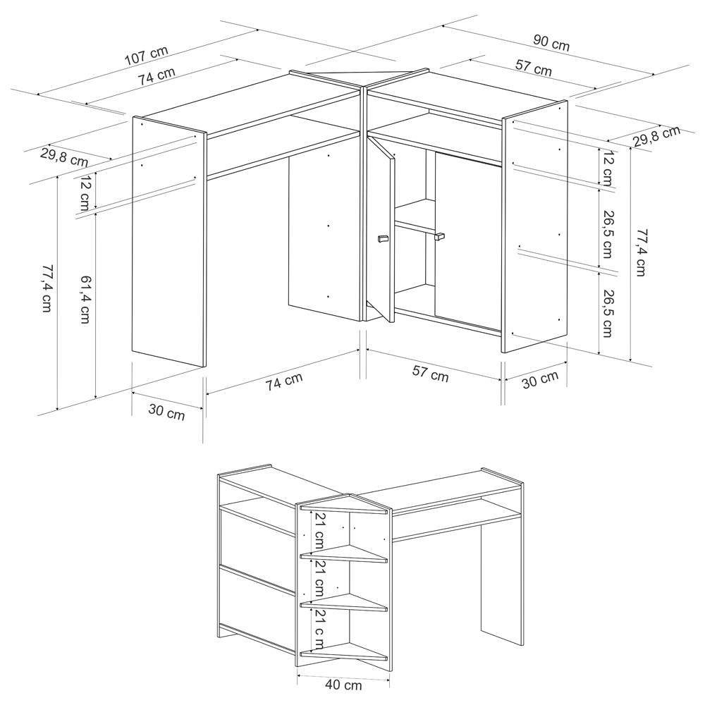 Esta mesa é ideal e prática para o seu trabalho. Ela é de canto, possui duas prateleiras, dois tampos para distribuir acessórios de manicure, um compartimento fechado com duas portas e uma prateleira interna. No meio ela ainda possui quatro prateleiras de canto onde você poderá acomodar vários objetos facilitando o trabalho e também uma linda decoração.