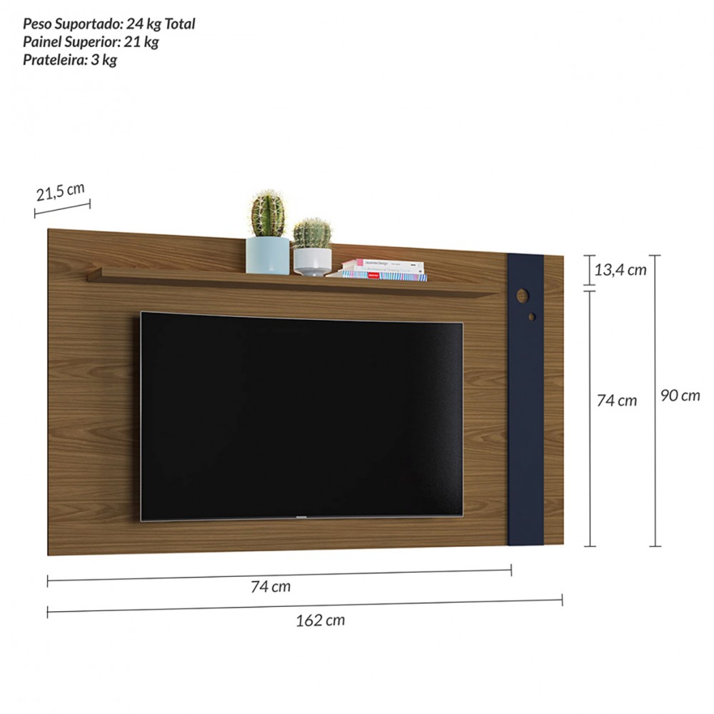 O Painel Home Eyre é um painel compacto, moderno que você poderá colocar em qualquer ambiente ou se preferir também poderá fazer uma linda composição com um Rack Retrô da Olivar Móveis. Possui uma prateleira de 25 mm, uma aplique diferenciado de MDF com detalhe retrô e passa fio.