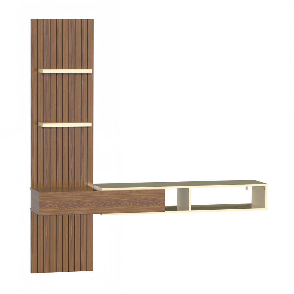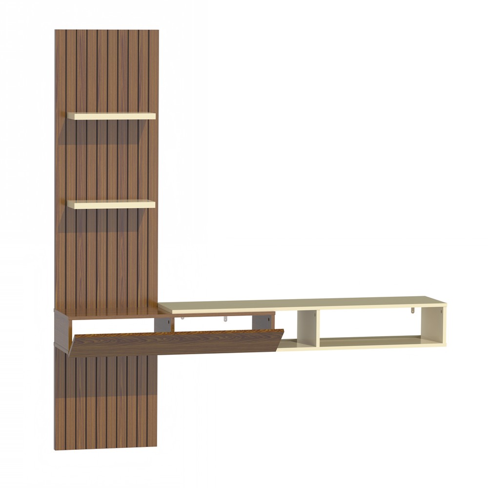Painel Ripado Flex P/Tvs Até 70”nicho e Porta Basc – 1,60mt, 1,80mt e 2,00mt - Montagem do Painel Ambos Lados Cedro Cedro Off White