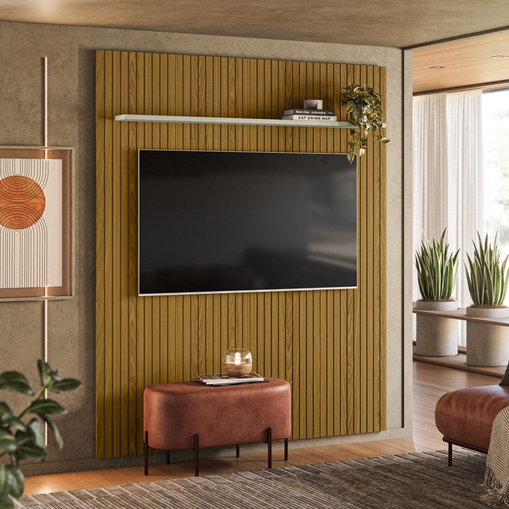 O Painel Uno Ripado Frizz é um produto com um design de frisos caracterizando o ripado, facilitando a limpeza e deixando-o mais clean. Sua estrutura é em MDF e MDP de 15 e 25 mm e possui uma prateleira de 25mm. Seus painéis são em MDF frisados e possui um passa fio para TV. É um painel na vertical onde você poderá colocar na frente dele algum objeto ou mesmo um móvel como um rack, uma bancada, um aparador ou um puff que não irá atrapalhar, podendo criar uma composição personalizando seu ambiente deixando-o exclusivo.