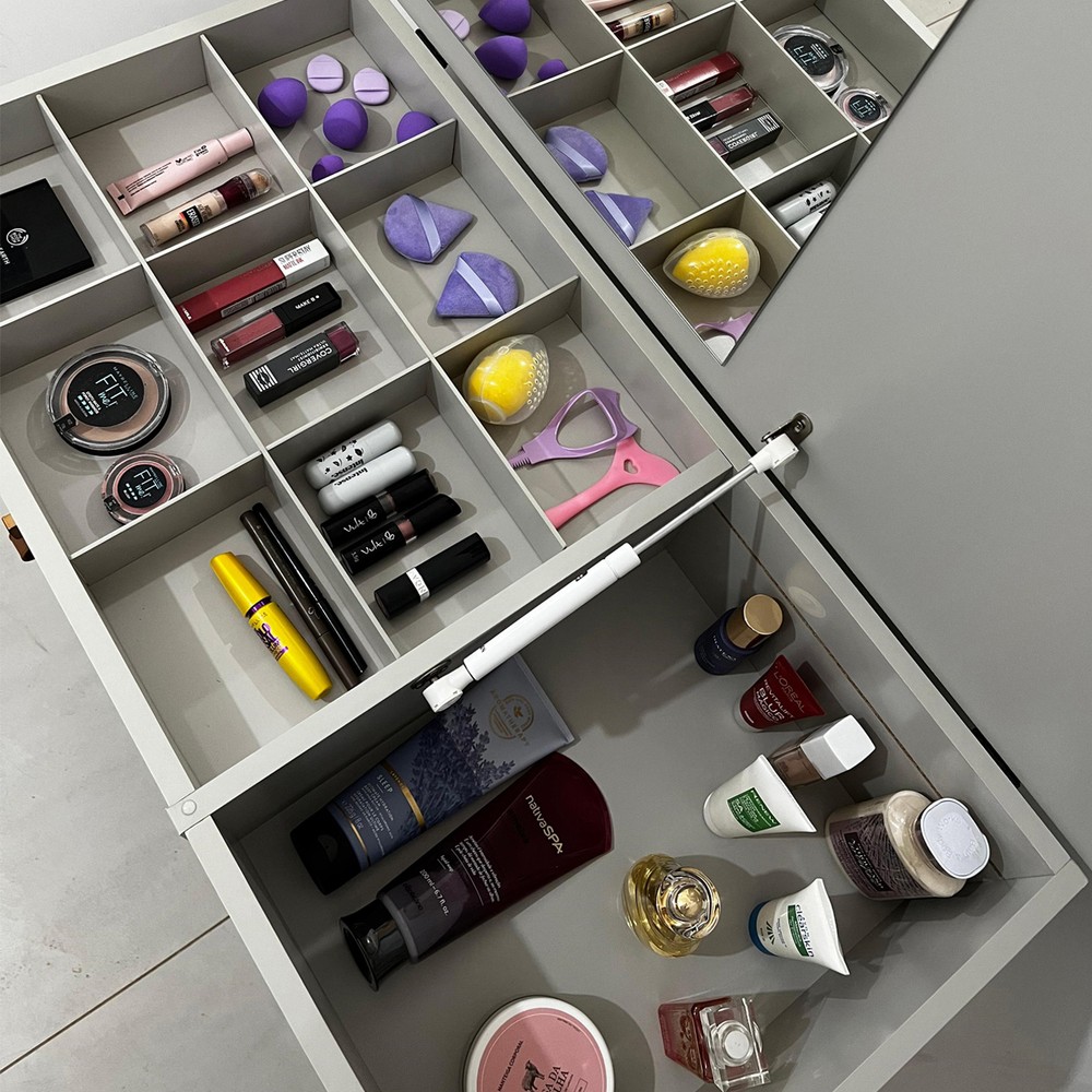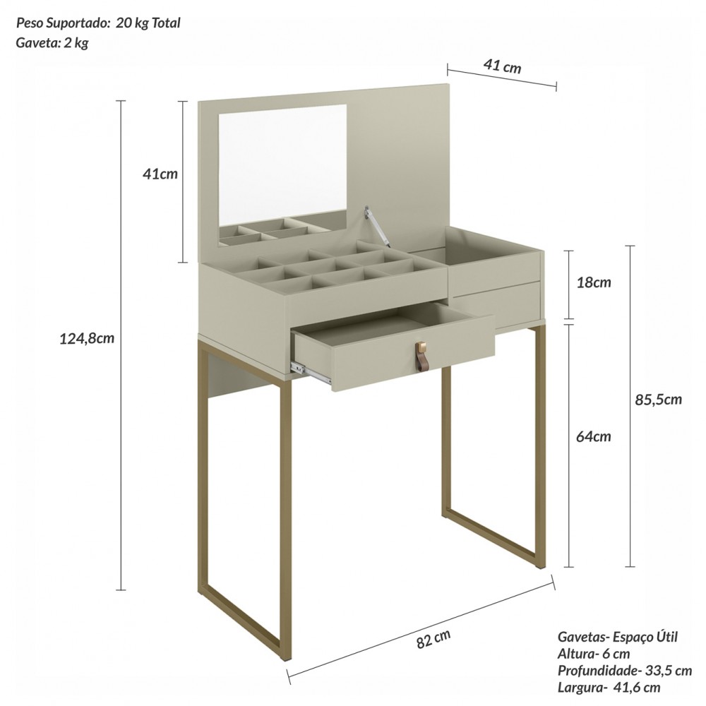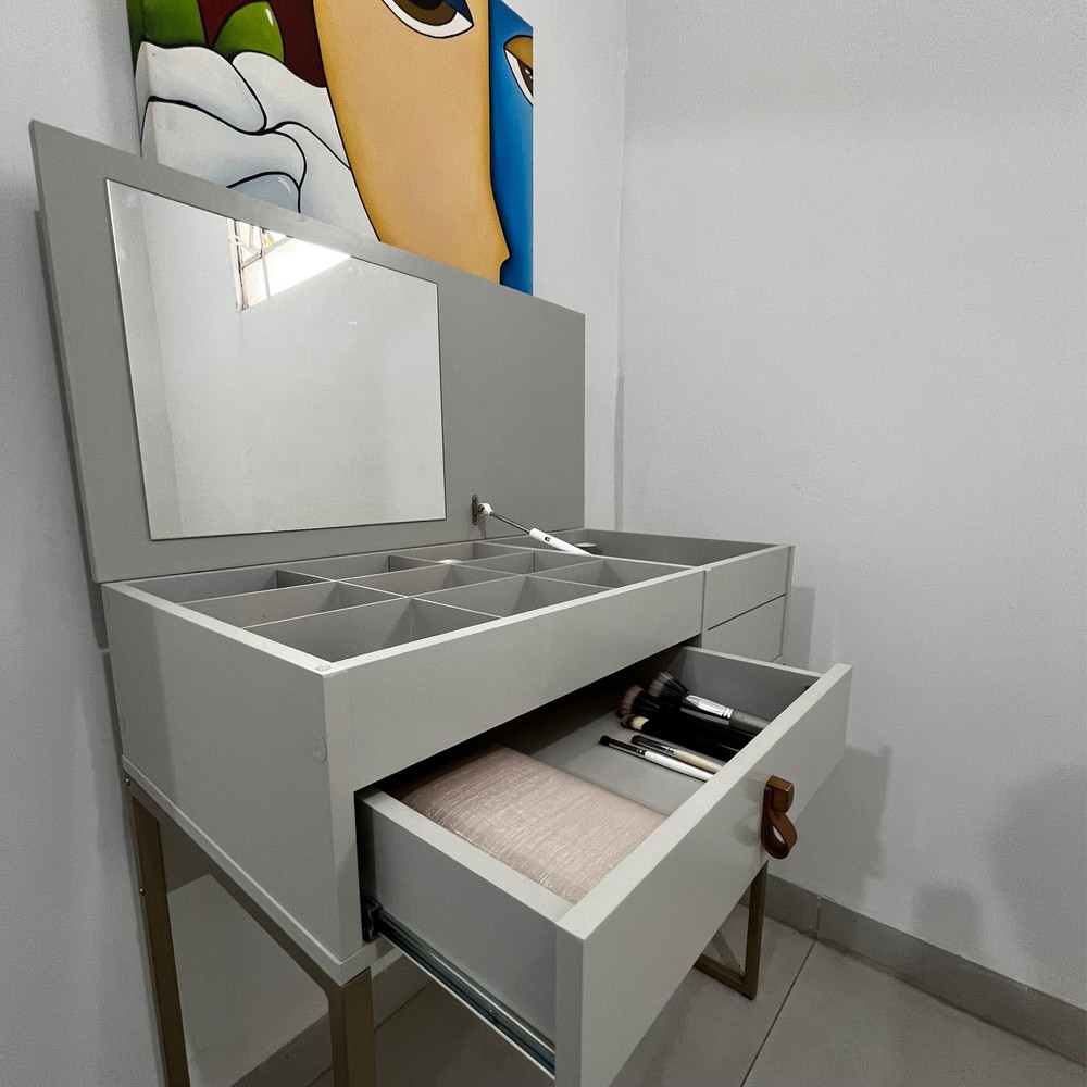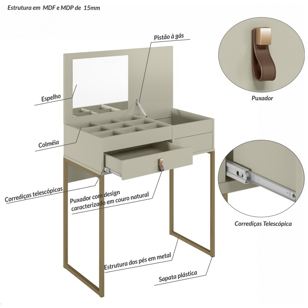 Penteadeira Industrial Lady C/Espelho Organizadora de Maquiagem C/Gaveta Off White - Olivar Móveis
