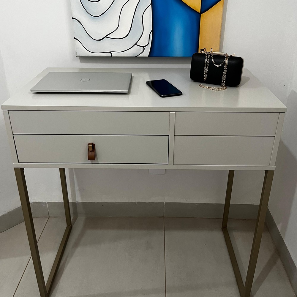 Bom dia, a cor do Off White e da estrutura de metal da penteadeira são as mesmas dos módulos do closet Olivar Móveis Off White e Ouro envelhecido? Pergunto para saber se essa a penteadeira junto com os módulos do closet ficariam juntos no mesmo espaço com os mesmos tons e cores.