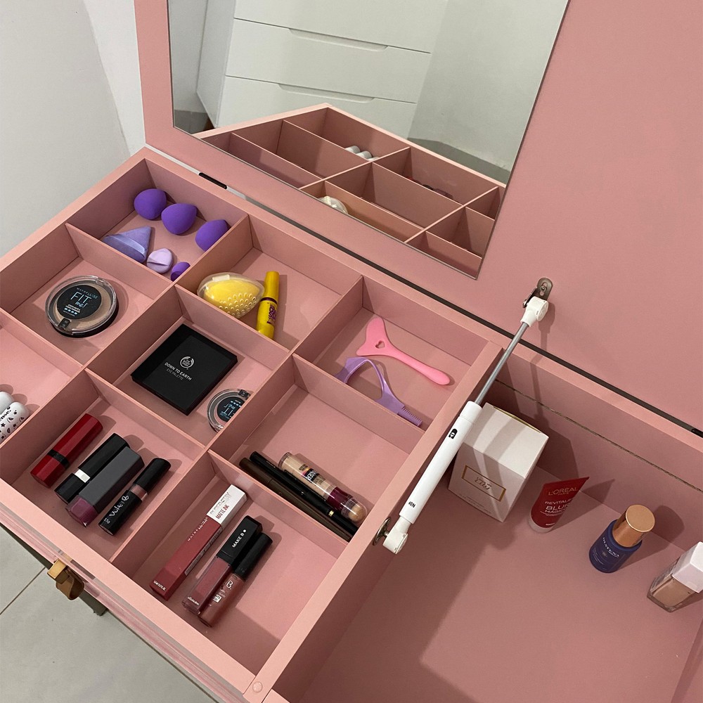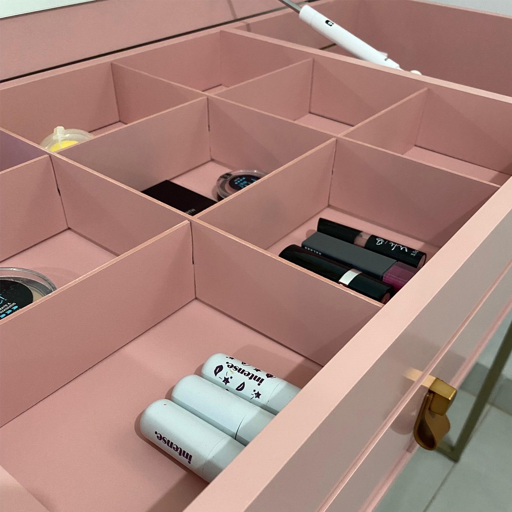 Penteadeira Industrial Lady C/Espelho Organizadora de Maquiagem C/Gaveta Rose - Olivar Móveis