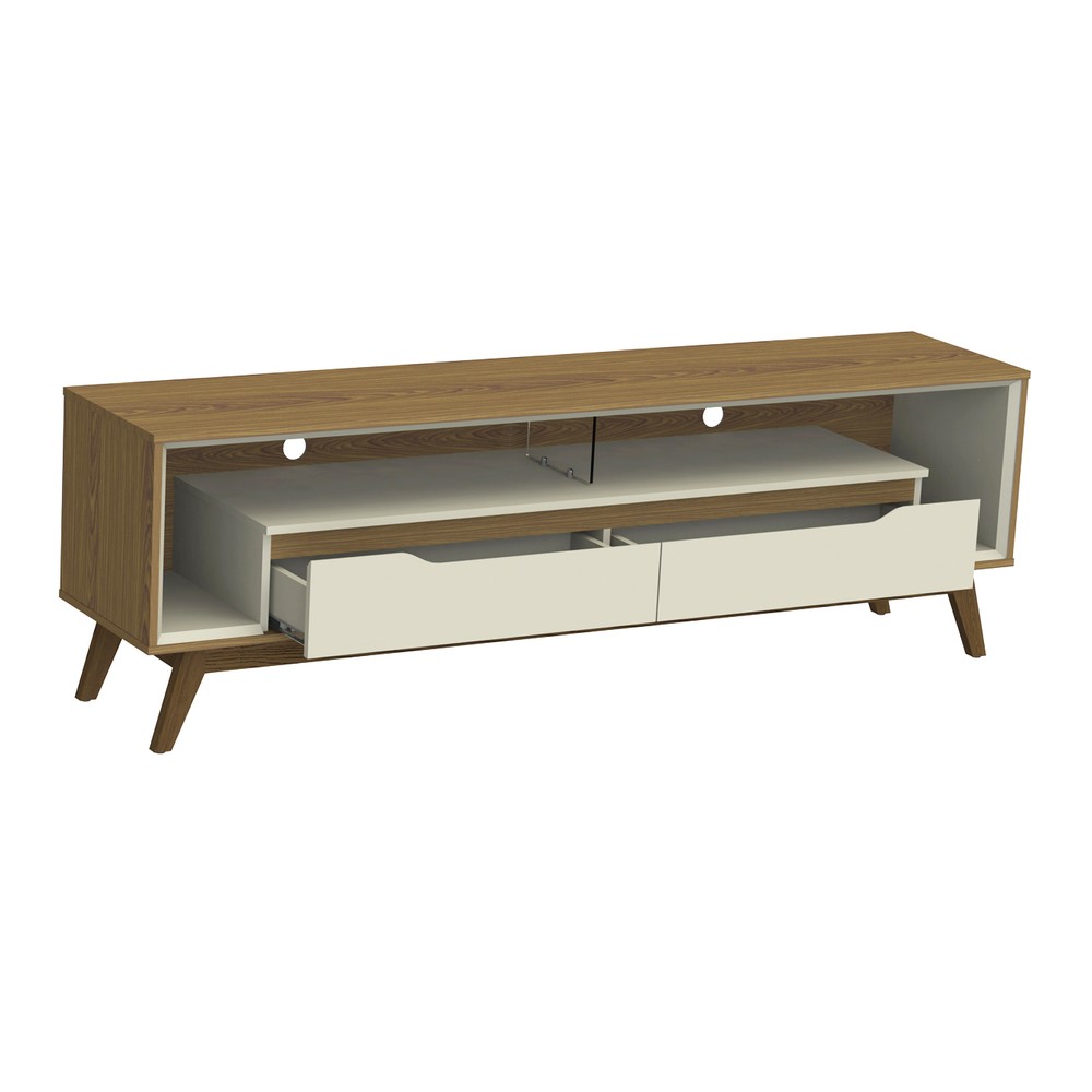 O Rack Retrô Led Duo é um produto com um design inovador e com diversidades de materiais, um dos seus diferenciais é um Kit de Neon em Led com luz quente no tampo superior, iluminando todo o Rack, inclusive refletindo esta iluminação em um divisor em vidro, valorizando-o e deixando o ambiente agradável e aconchegante. Nele possui à volta inteira interna peças em MDF com bordas chanfradas, reforçando e valorizando ainda mais o produto. Também apresenta um nicho com duas gavetas em MDF usinadas com pega como puxadores, corrediças telescópicas e passa fio para eletrônicos. Sua estrutura é em MDF e MDP de 15 mm e com uma estrutura dos pés em madeira maciça. É um produto com design de uma pegada contemporânea onde você personaliza seu ambiente deixando-o exclusivo.