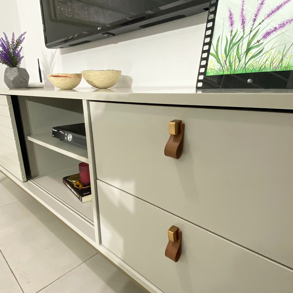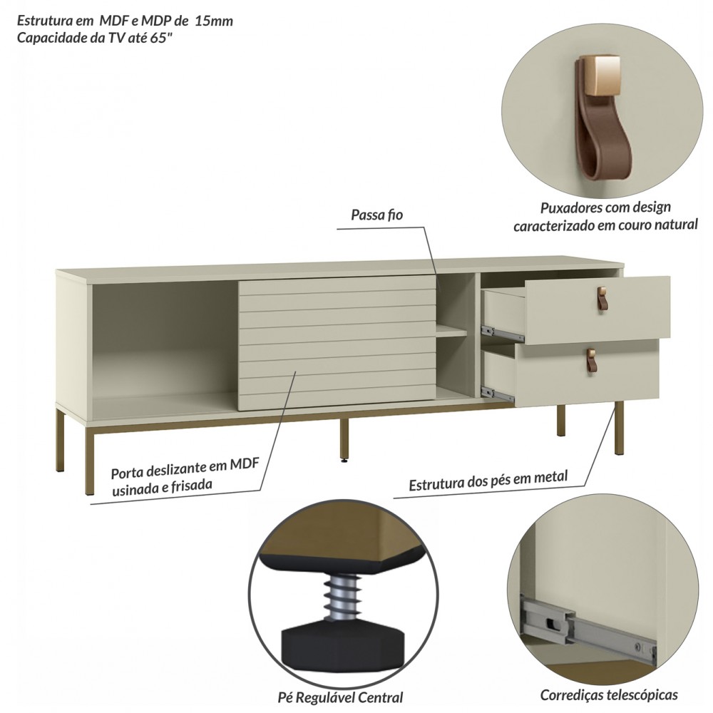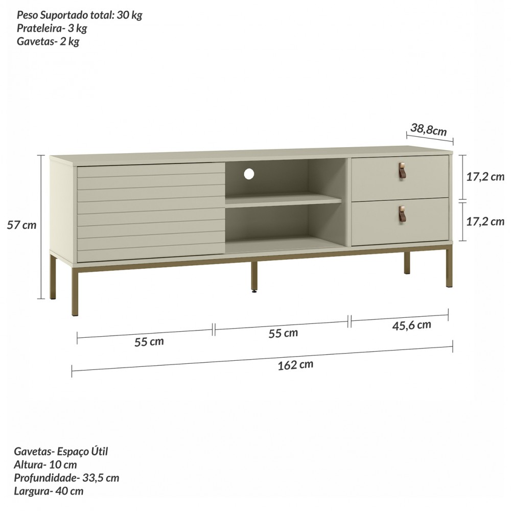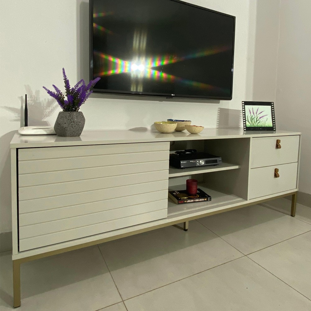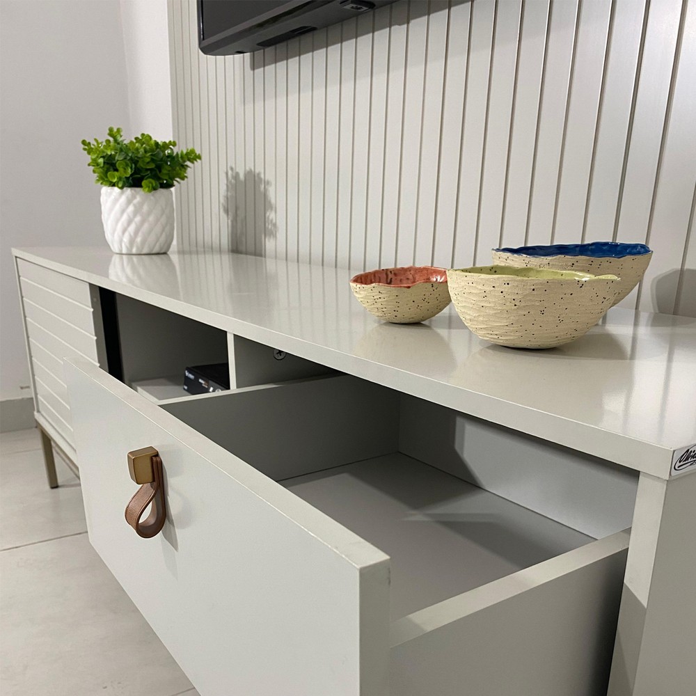 Rack Industrial Frizado Dior P/Tvs Até 65 Polegadas 162cm 2 Gavetas Off White - Olivar Móveis
