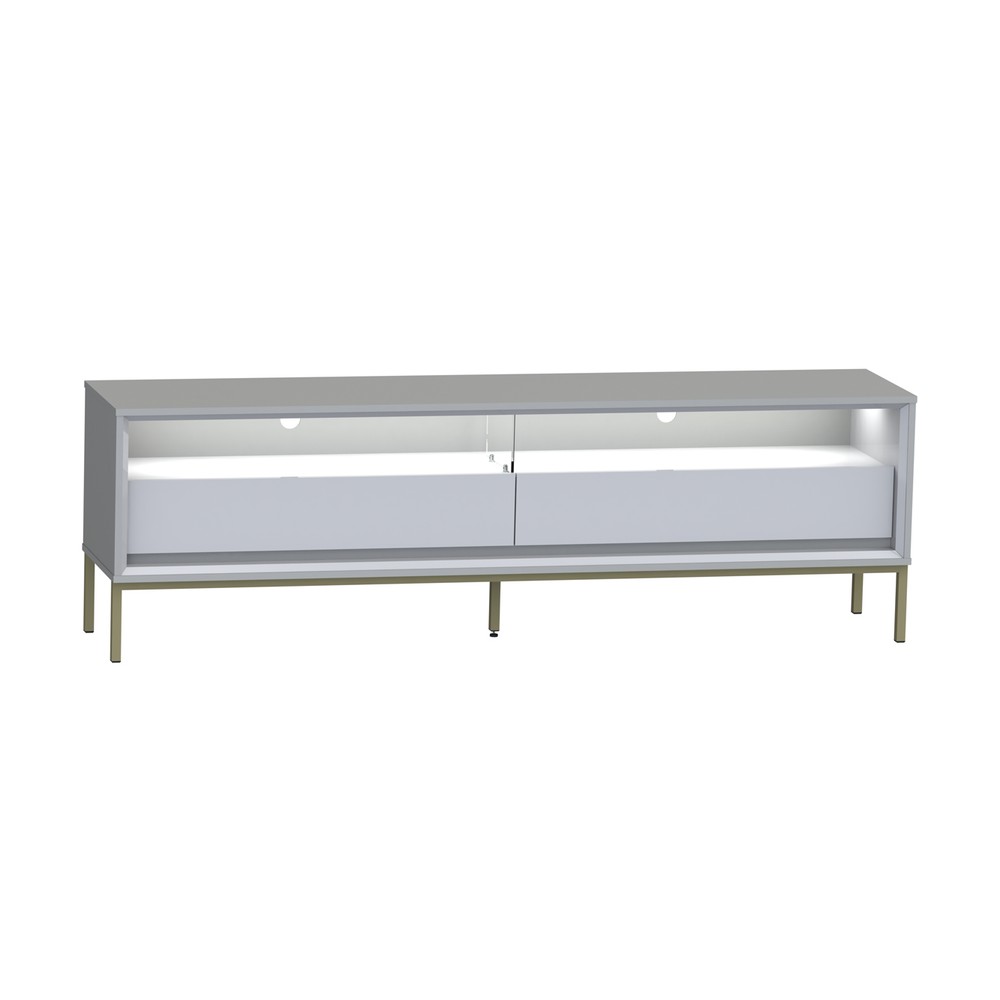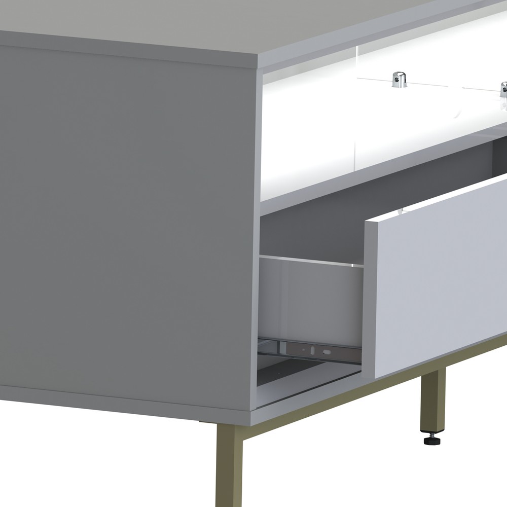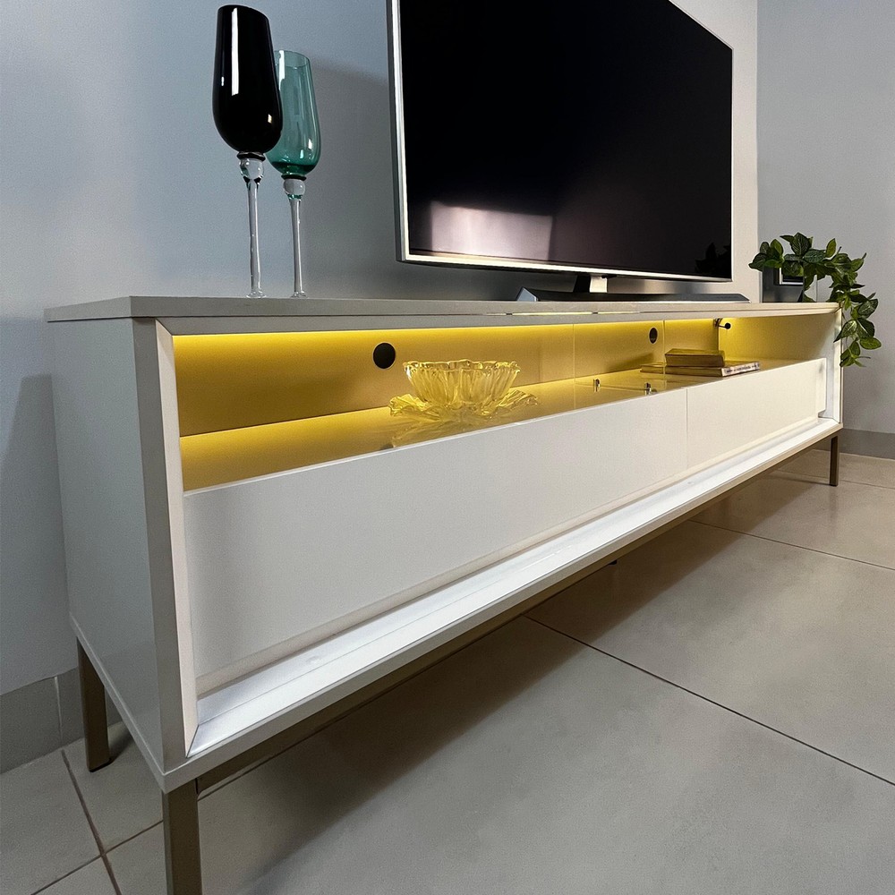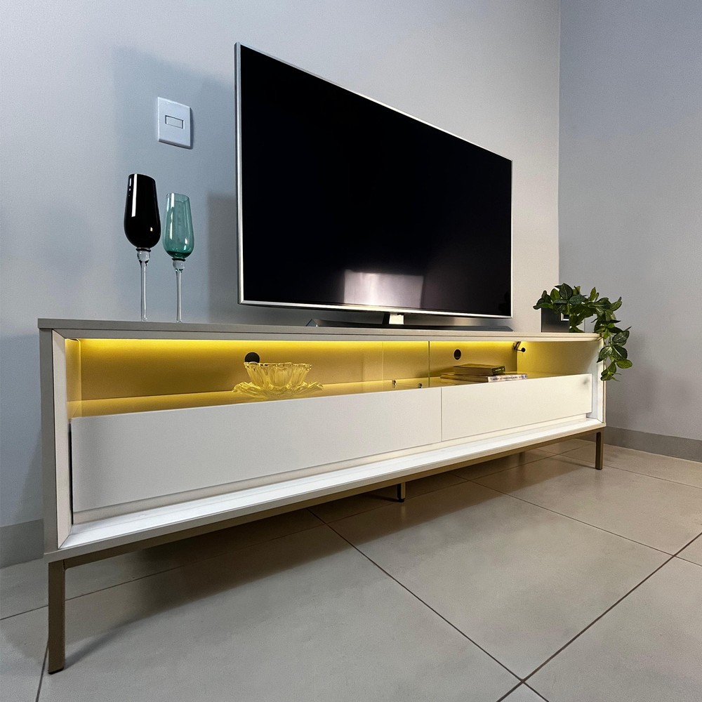 Rack Industrial Fusion para TV Até 65 Polegadas 2 Gavetas 180cm com Iluminação em Led Off White/Branco - Olivar Móveis