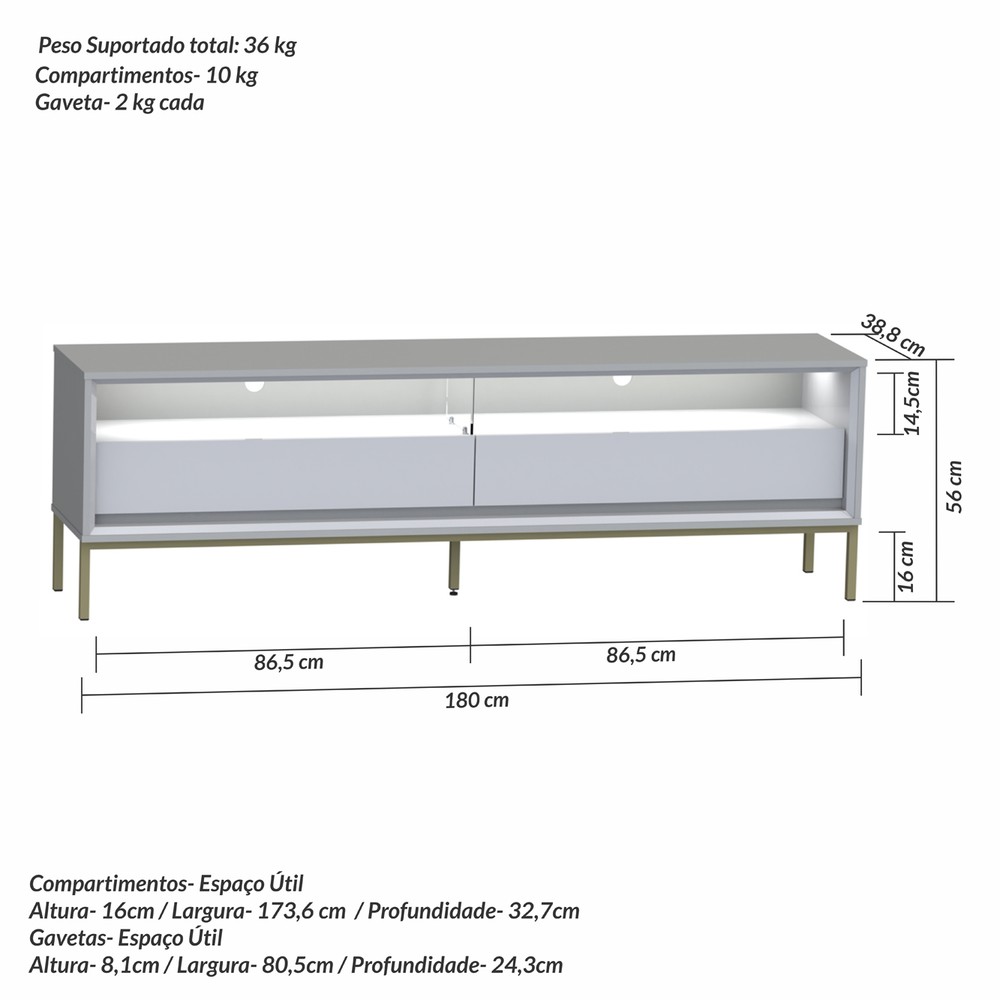 Medida do Produto Montado (LXCXA) 38,8cmX180cmX56cm