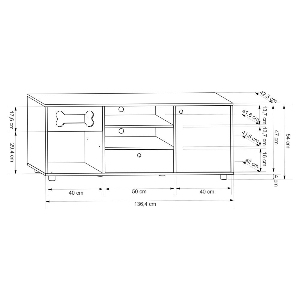 O Rack Pet Roxy conta com um tampo para acomodação de tvs até 49 polegadas e nichos disponíveis para você colocar objetos de decoração ou para guardar inúmeros utensílios.