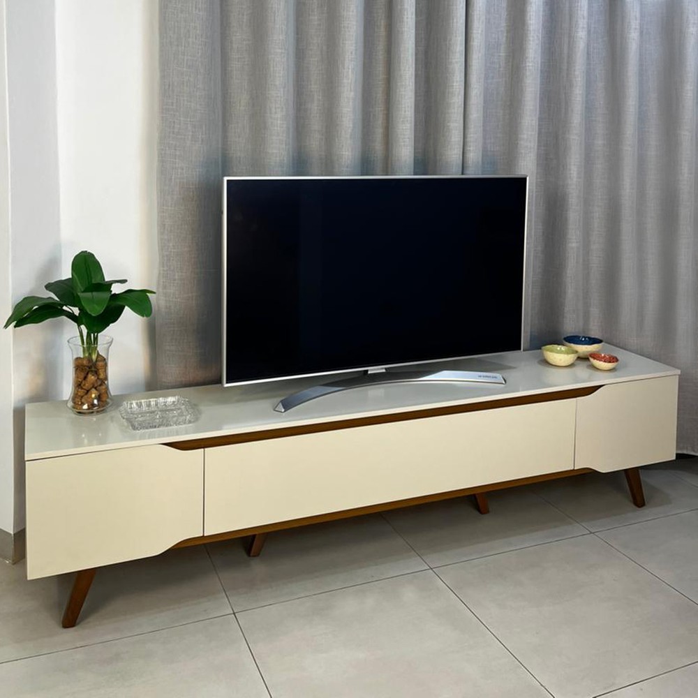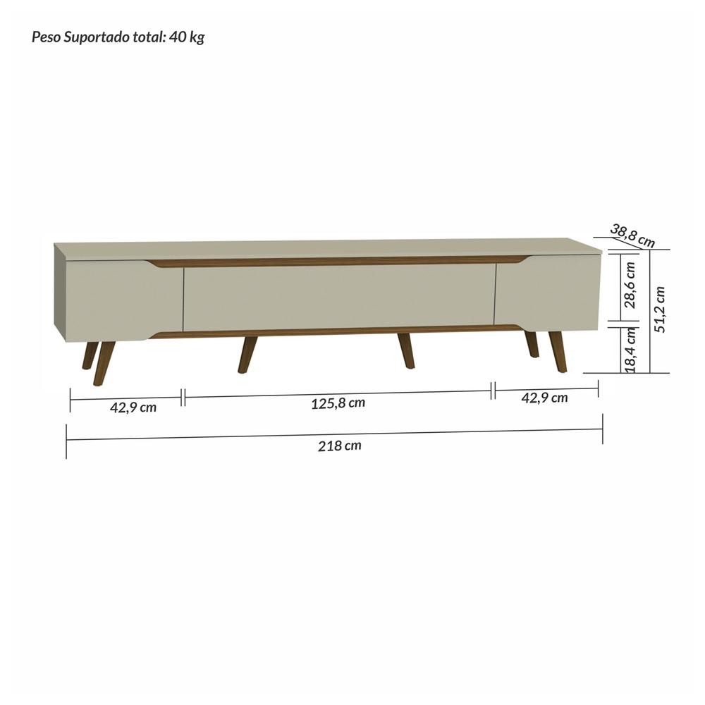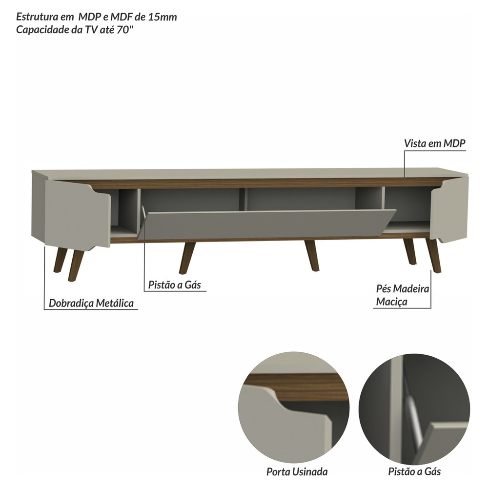 O Rack Shop 2180mm é um produto retrô, devido o design dos seus pés em madeira maciça incorporando-o e deixando- o mais nobre e ao mesmo tempo moderno e inovador. Possui três portas em MDF, duas de rotação e uma central basculante, as três possuem uma usinagem para servir de pega para puxador. Sua estrutura é em MDP e MDF de 15 mm. É um produto onde você personaliza seu ambiente deixando-o exclusivo, agradável e aconchegante.