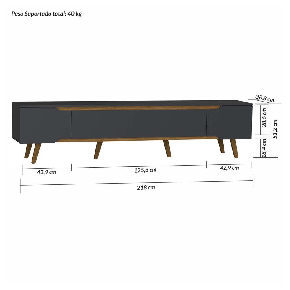Medida do Produto Montado (LXCXA) 38,8cmX218cmX51,2cm