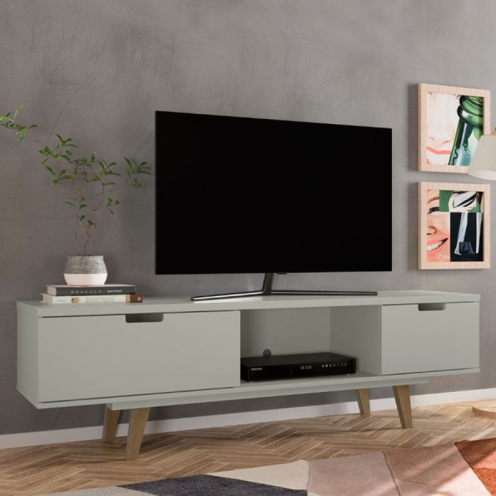 O Rack Retrô Vintage Box é um móvel de MDF e MDP de 15 e 25 mm, com uma pegada retrô, deixando seu ambiente diferente e com personalidade. Possui duas gavetas em MDF, com corrediças telescópicas metálicas e usinagem como puxadores. Um compartimento aberto para colocar objetos e eletrônicos e fundos traseiro embutidos. Possui um espaço ótimo para sua TV com passa fio e quatro pés vintage em madeira envernizada.
