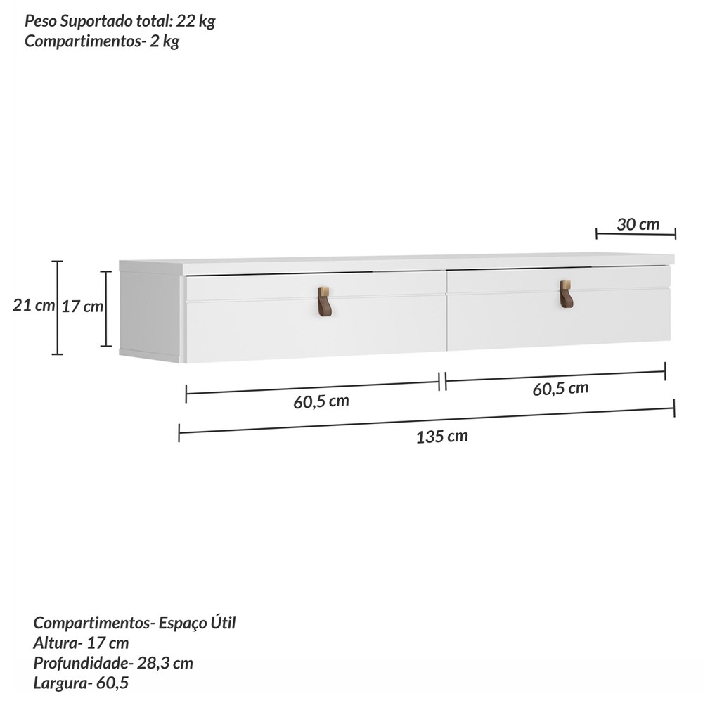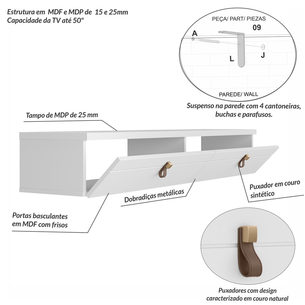 Rack Suspenso Line P/ Tvs Até 50 Polegadas 135cm 2 Portas Branco - Olivar Móveis