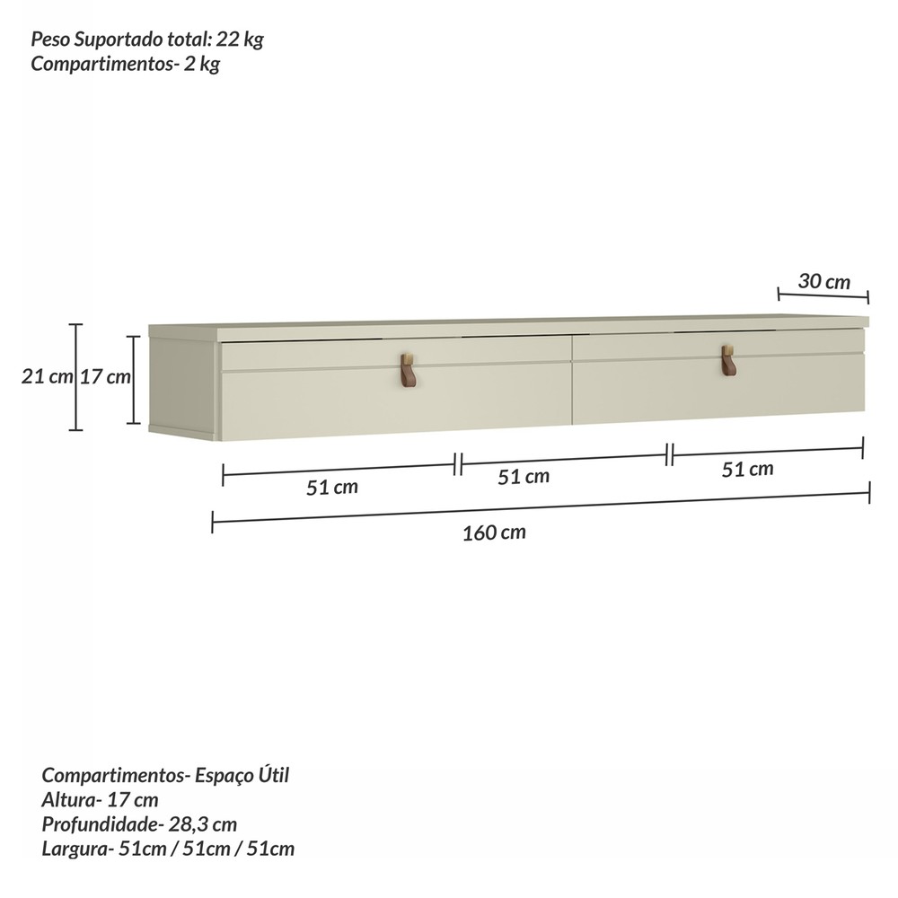 O Rack Suspenso Line 1600mm é um produto com um design moderno, possui duas portas basculantes em MDF com frisos e puxadores caracterizando o couro natural. Sua estrutura é em MDF e MDP de 15 e 25 mm, possui três compartimentos internos. É um produto que você poderá instalar na parede de qualquer ambiente, no estilo contemporâneo, personalizando e deixando-o exclusivo.